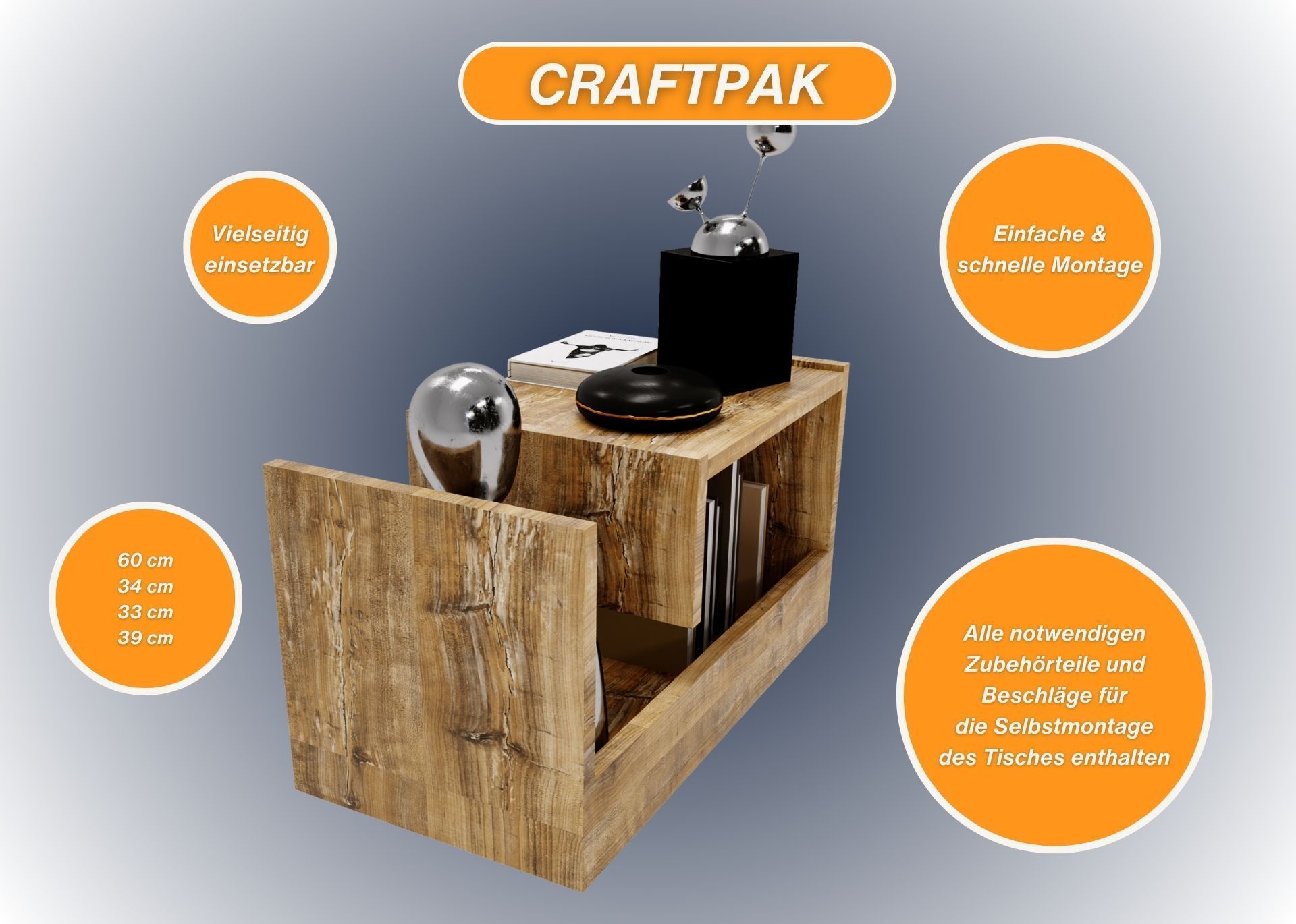 CraftPAK Wohnzimmer Tisch für Couch TRIO | 3 mögliche Aufstellmöglichkeiten