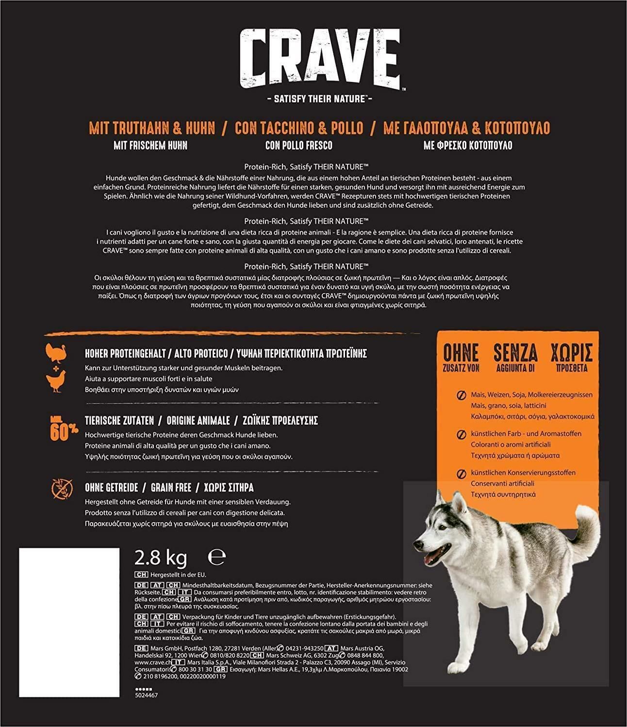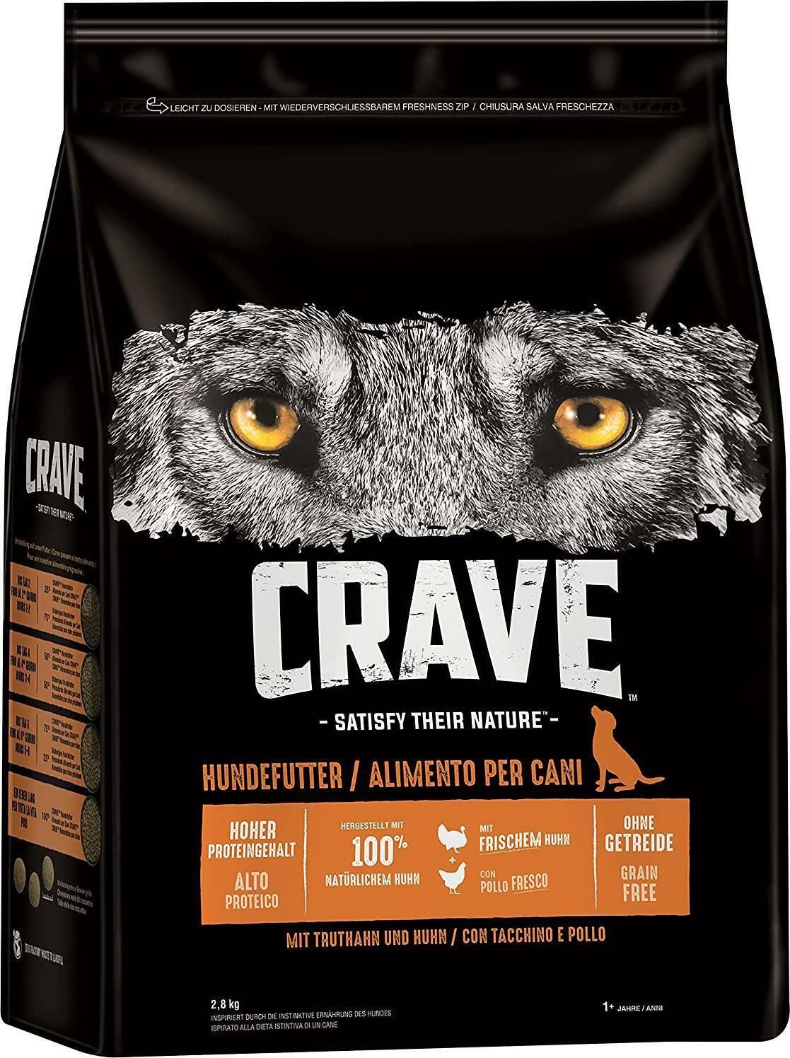 CRAVE Premium Trockenfutter Hundefutter Adult Truthahn Huhn 3er Pack 3 x 2,8 kg