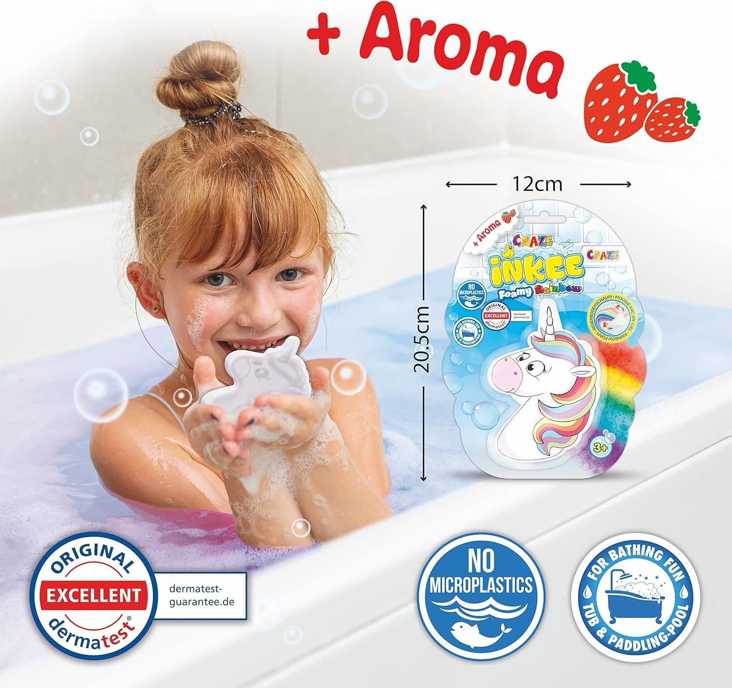 CRAZE 22511 - INKEE Foamy Rainbow - Regenbogen Badezusatz mit Erdbeerduft Schaum