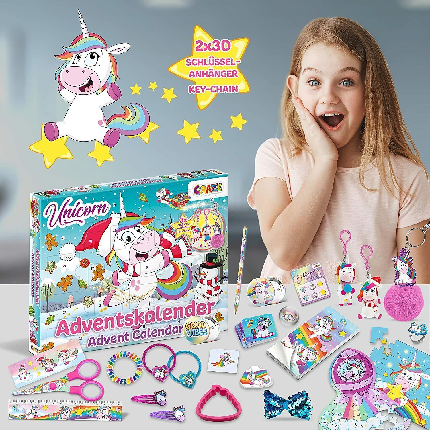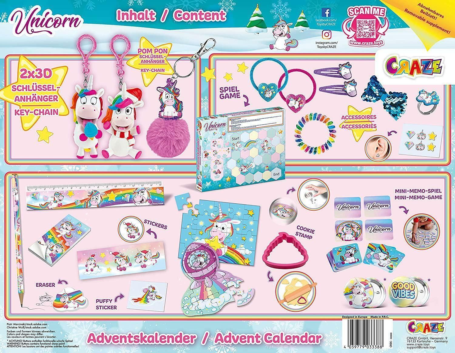 CRAZE 33388 Adventskalender Unicorn Einhorn Weihnachtskalender 2024 Spielzeug