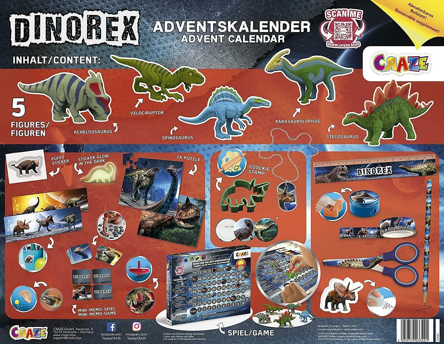 CRAZE 33401 Adventskalender Dinorex Dinosaurier Weihnachtskalender 2024 Kinder