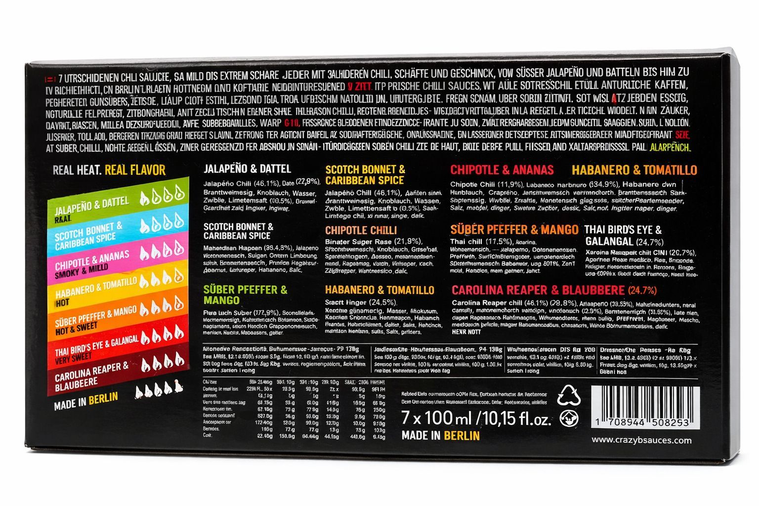 Crazy Bastard Hot Sauce Geschenkset Chilisaucen 7er Set 7x100ml