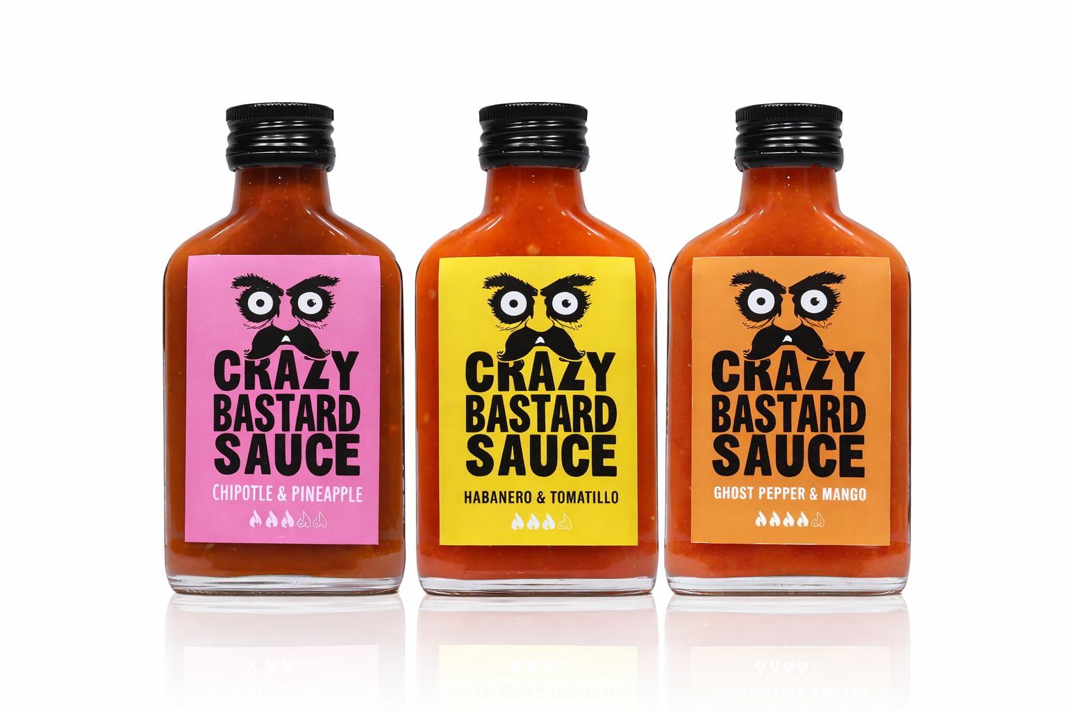 Crazy Bastard mittel-Scharfe Grillsaucen Geschenkset Chilisaucen 3er Set 3x100ml Gelb