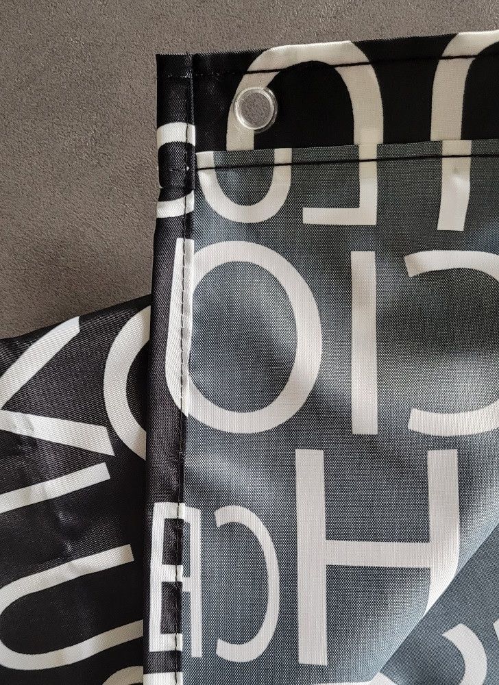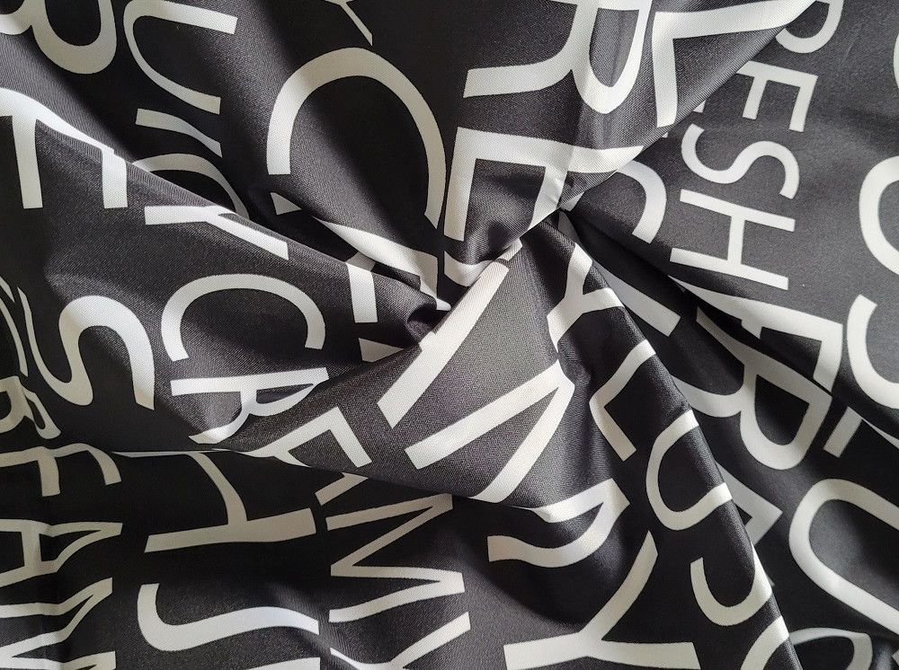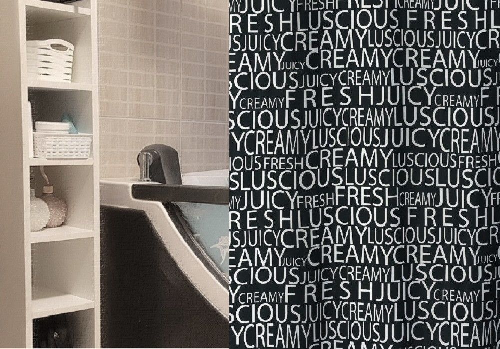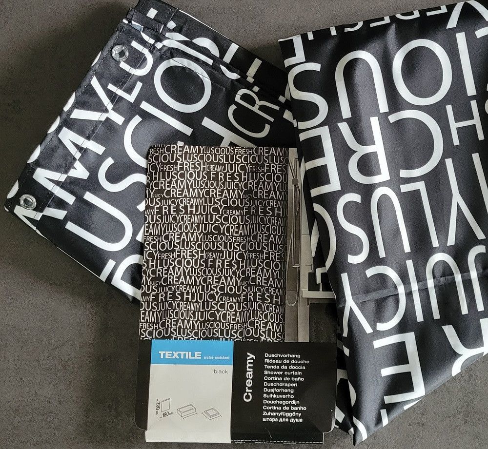 Creamy Black Schwarz Textil Duschvorhang 180x200cm. Buchstaben Motiv