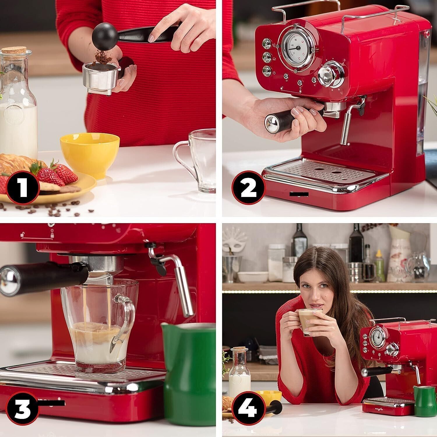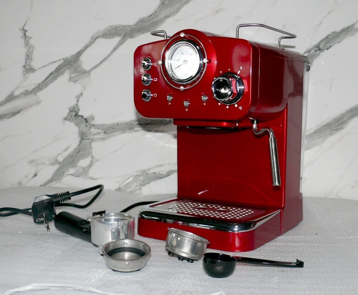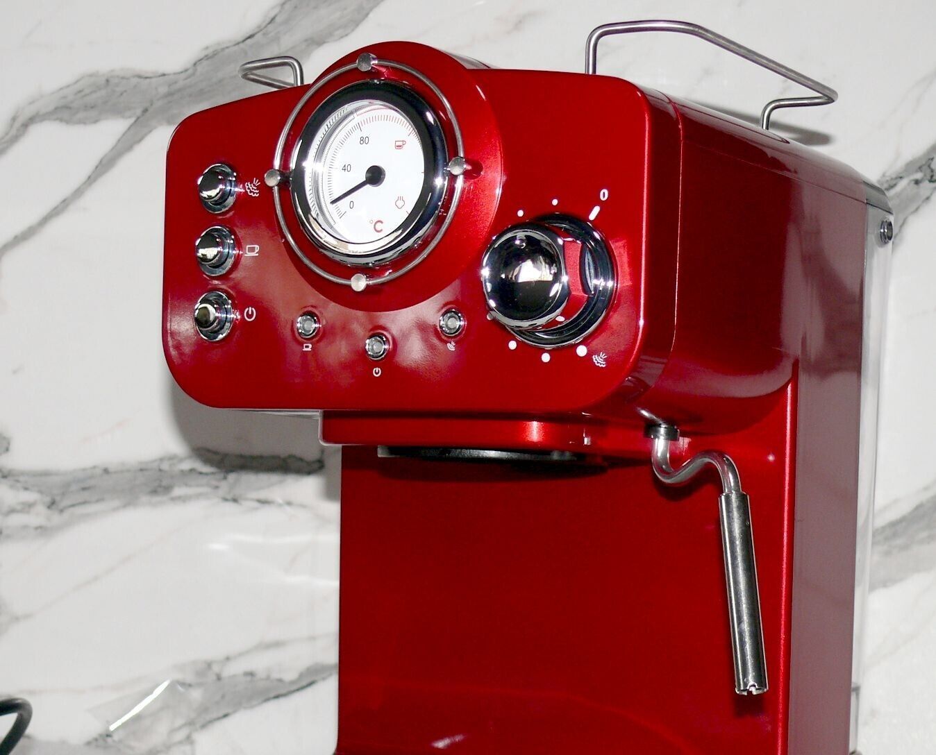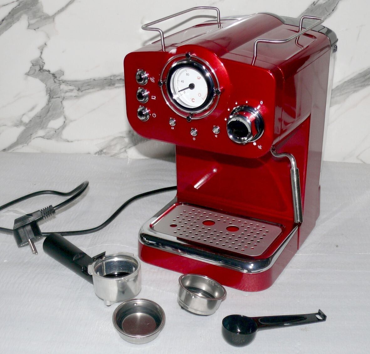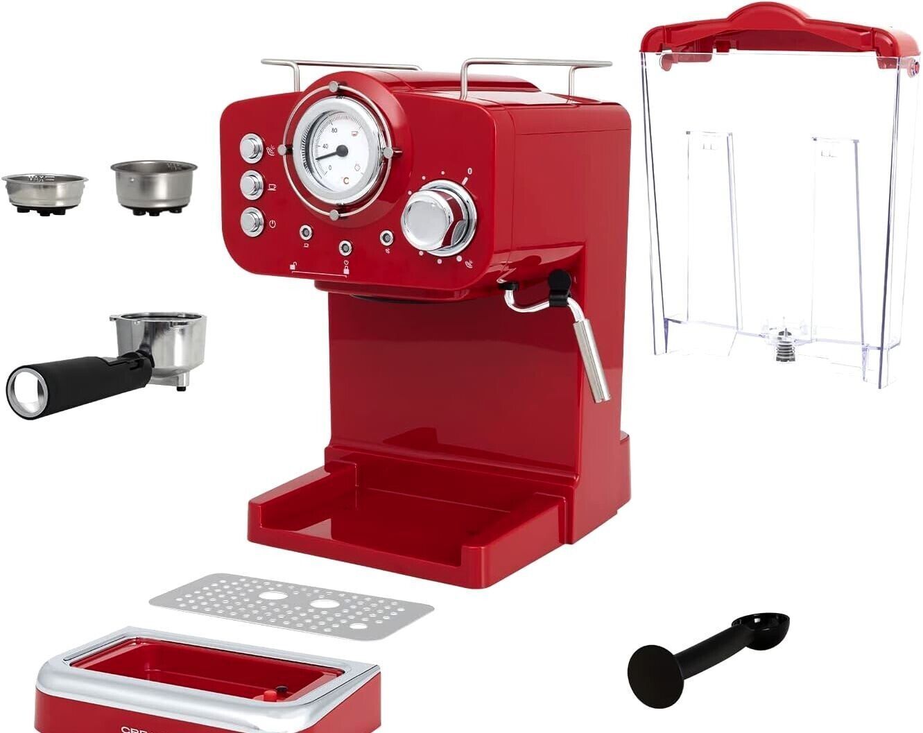 CREATE C82051 Retro Espresso Cappuccino Pad Kaffee Automat 15Bar 1100W 1,2L Rot
