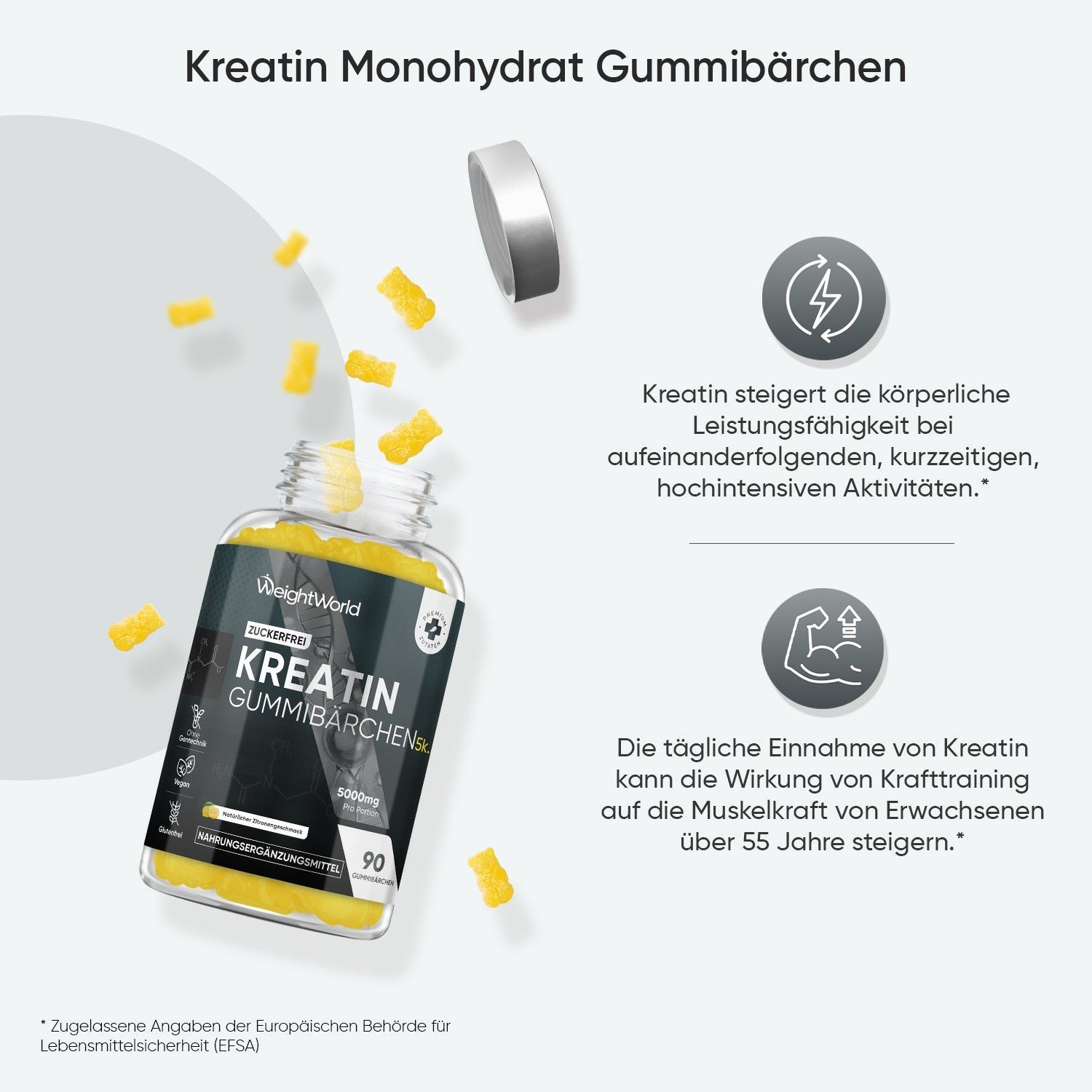 Creatin Monohydrate - 5000 mg - 90 Gummibärchen ohne Zucker-2 Pack