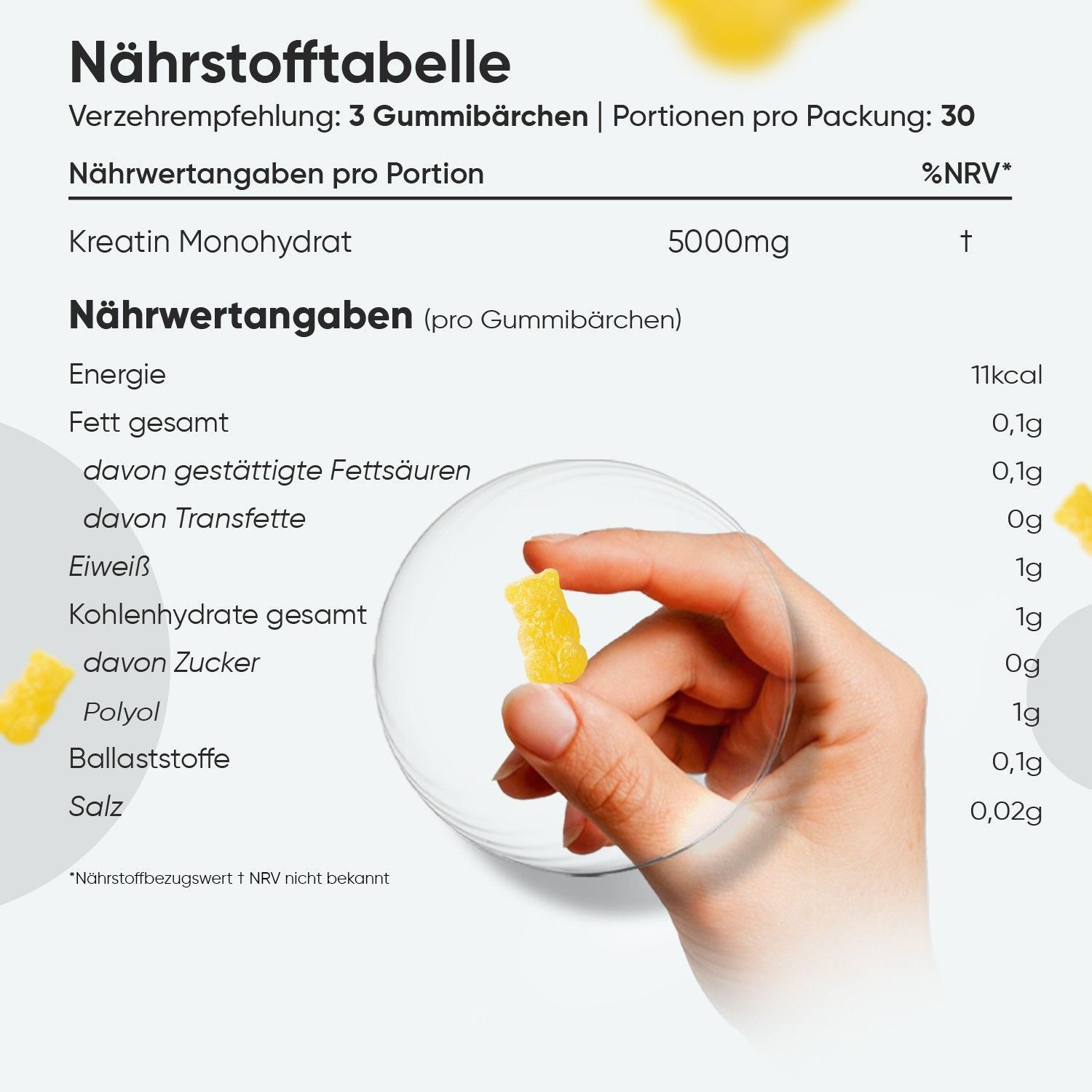 Creatin Monohydrate - 5000 mg - 90 Gummibärchen ohne Zucker-3 Pack