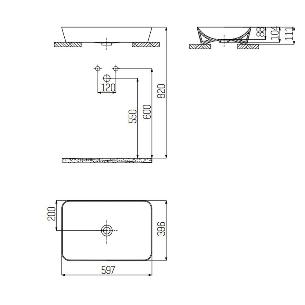 Creavit Aufsatzwaschbecken rechteckig schwarz matt 60x40 cm