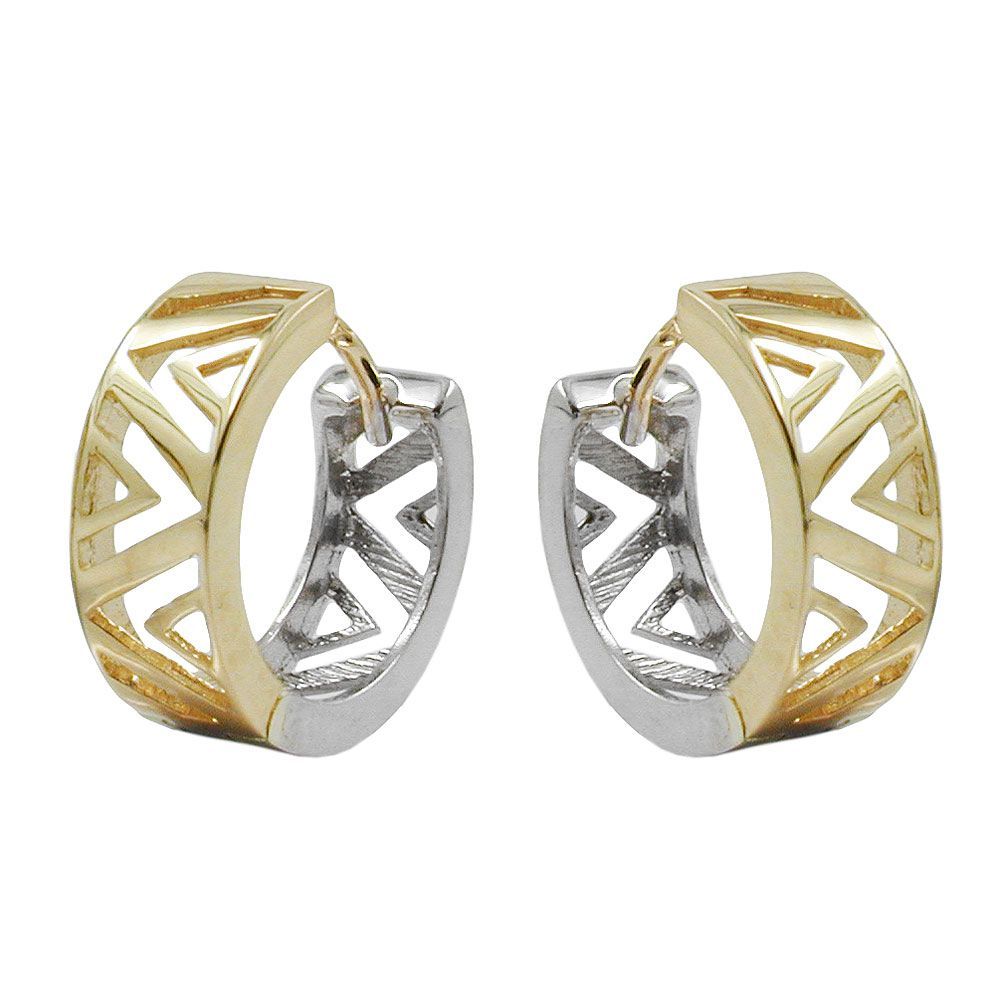 Gallay Creole Ohrring 13x5mm Klappscharnier bicolor Gelbgold und Weißgold 9Kt GOLD