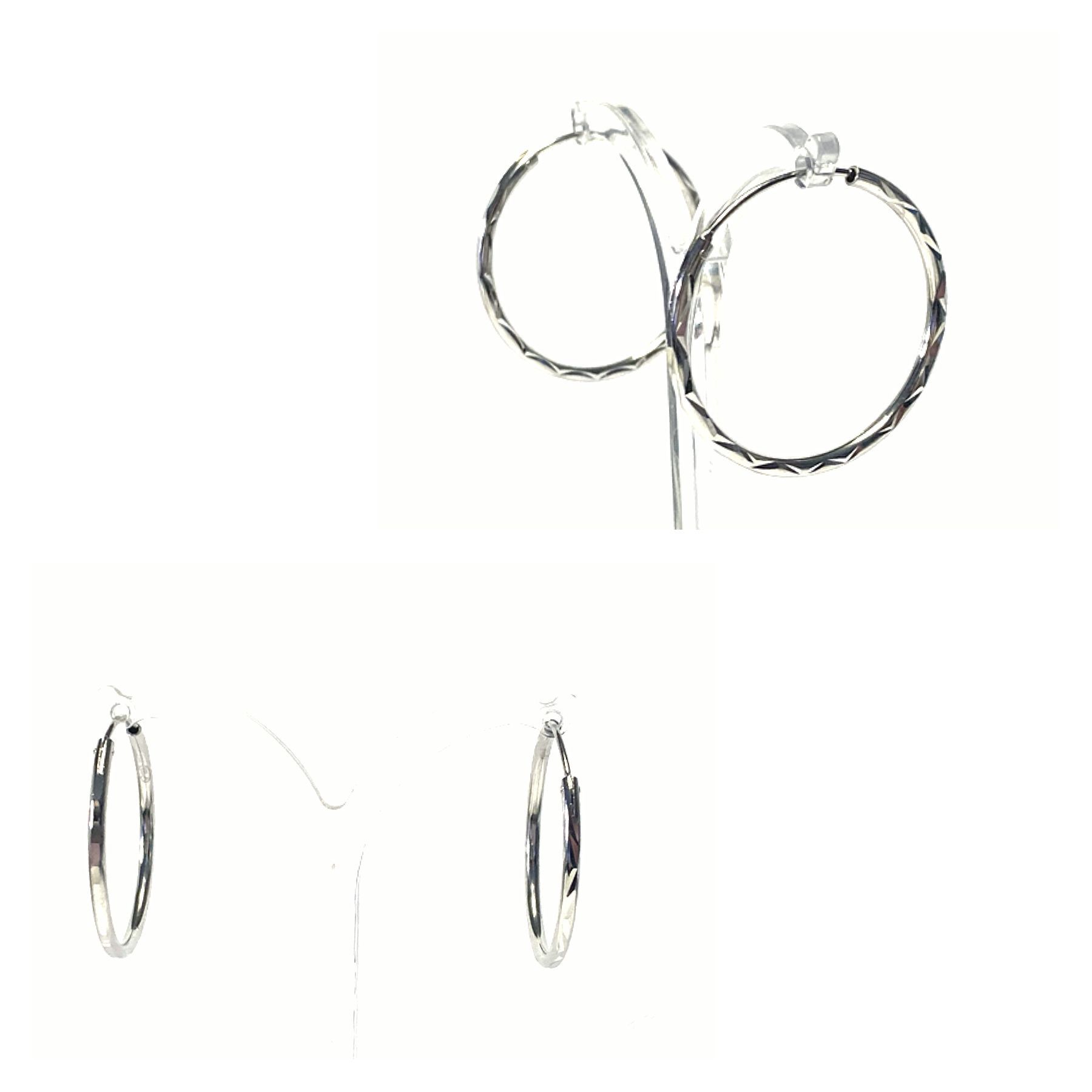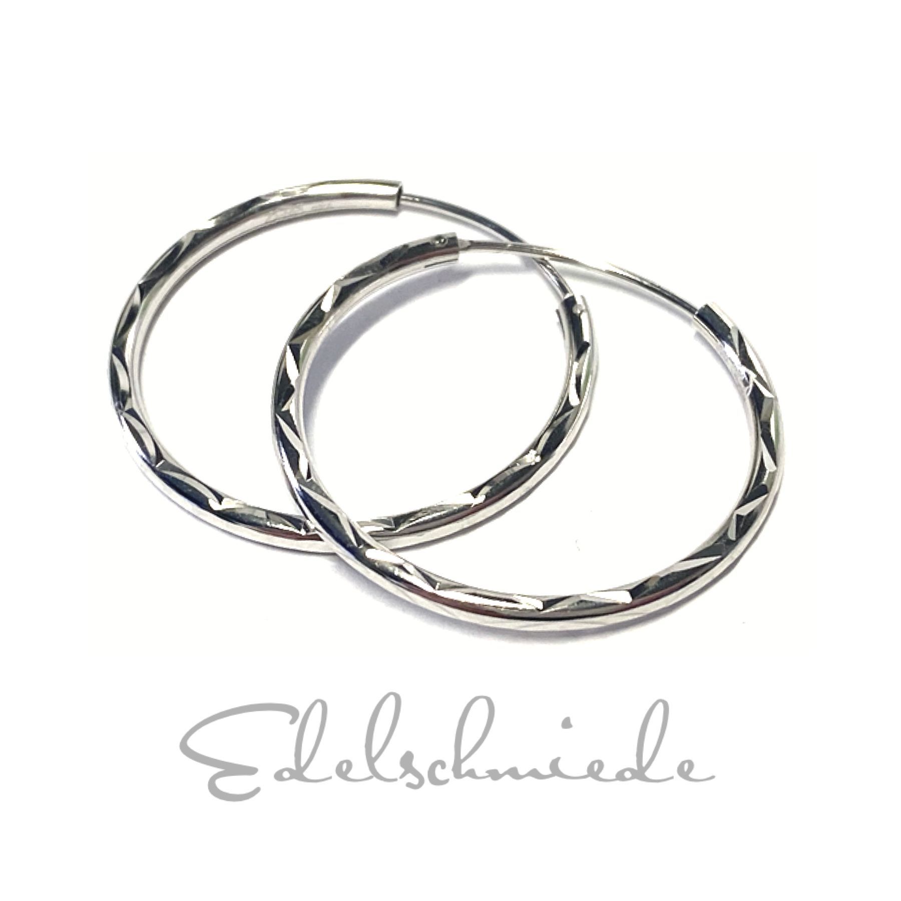 Creolen 30 mm 925 Silber rhodiniert diamantiert schmal Ohrring