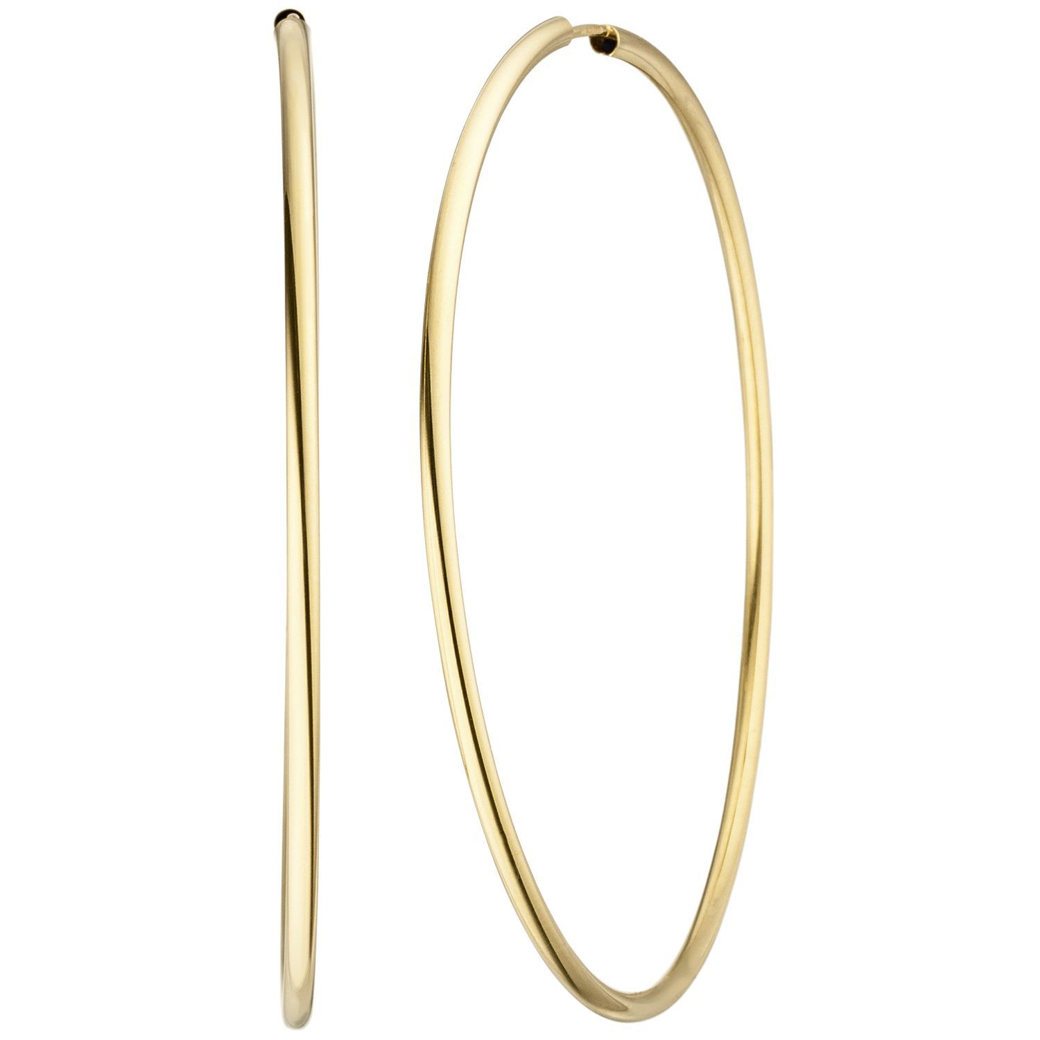 1 Paar Creolen aus 14 Karat (585) Gelbgold, Außendurchmesser ca. 57,7 mm, Breite ca. 1,7 mm, Gewicht ca. 2,4 g * Bitte beachten Sie die Maße! Auf dem Foto kann der Artikel größer wirken *