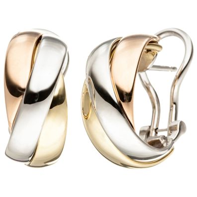 • Creolen 585 Gold Gelbgold Weißgold Rotgold tricolor dreifarbig Ohrringe