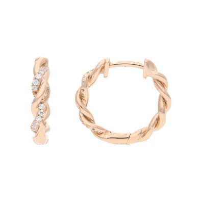 • Creolen 585 Gold Rotgold 2 Diamanten Brillanten Ohrringe
