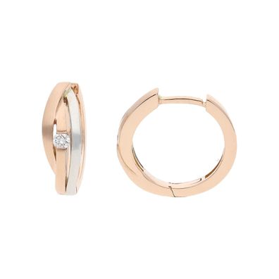 • Creolen 585 Gold Rotgold bicolor 2 Diamanten Brillanten Ohrringe