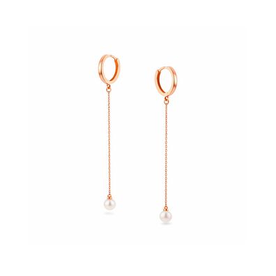 • Creolen Ketten-Ohrhänger aus 585 Rotgold mit Perlen