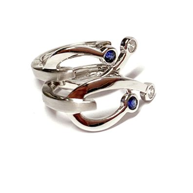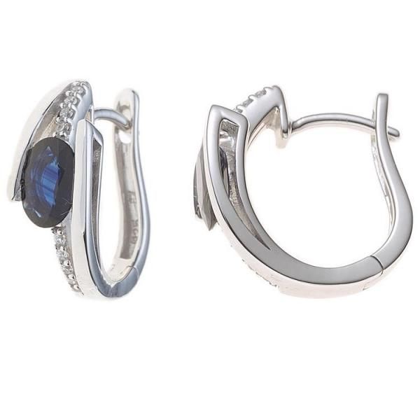 JOBO Creolen 585 Weißgold 2 blaue Saphire 16 Diamanten Brillanten Ohrringe