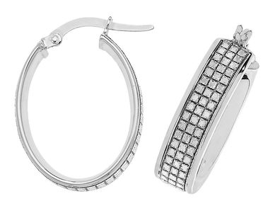 • 9 ct/Karat Weißgold Damen - Creolen / Ohrringe