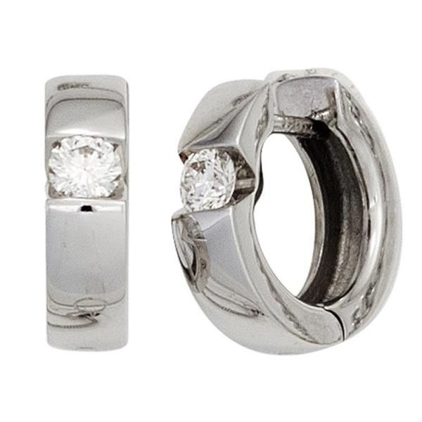 JOBO Creolen 585 Weißgold 2 Diamanten Brillanten 13 mm Klappmechanik