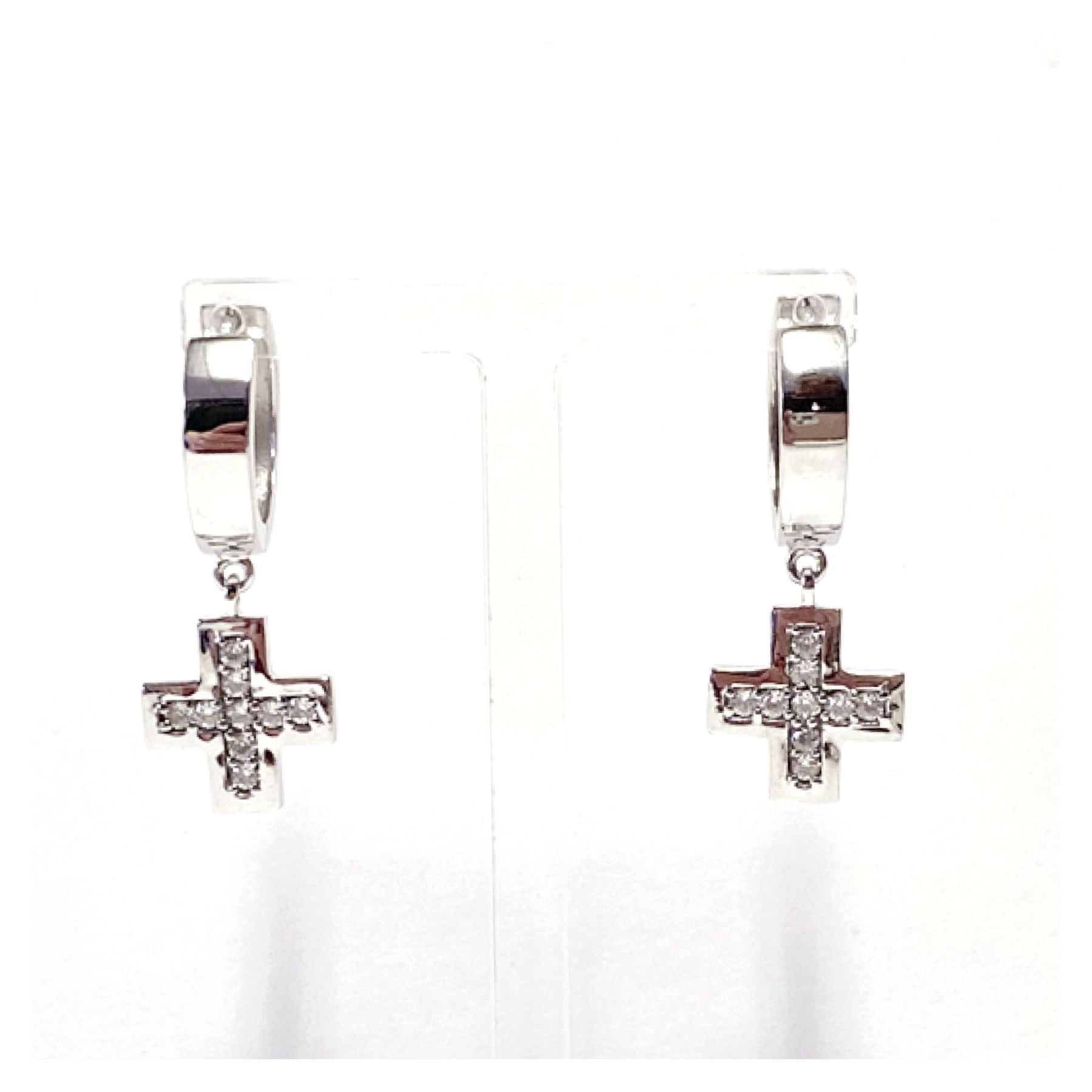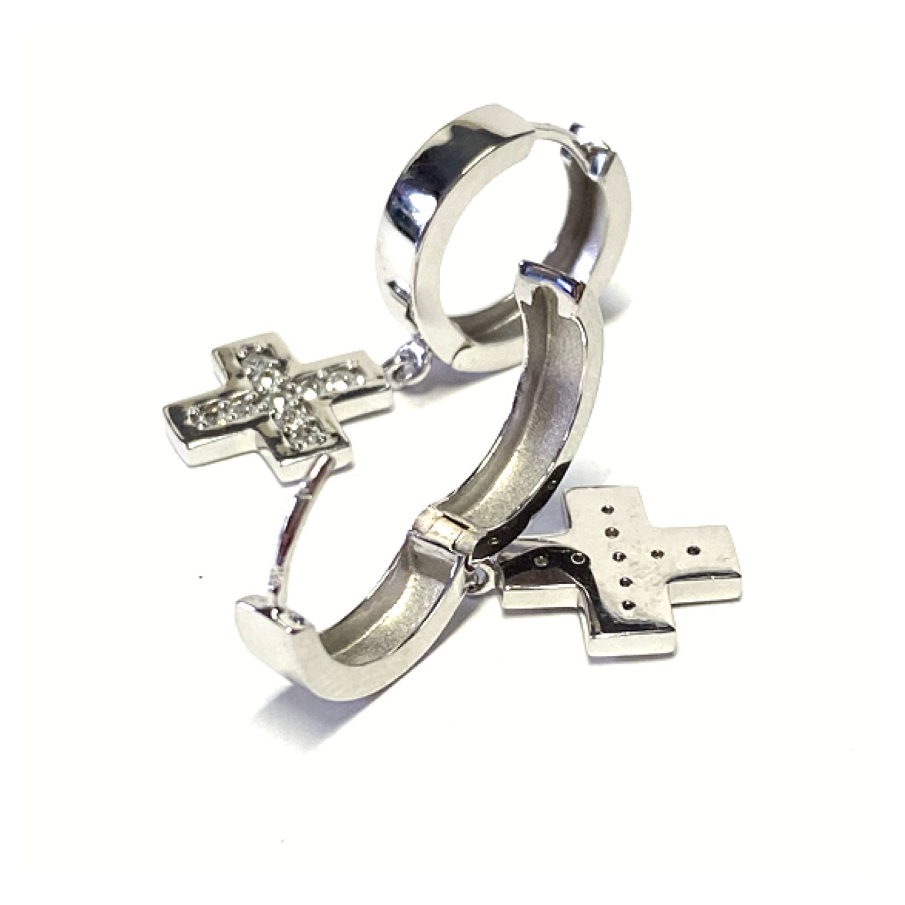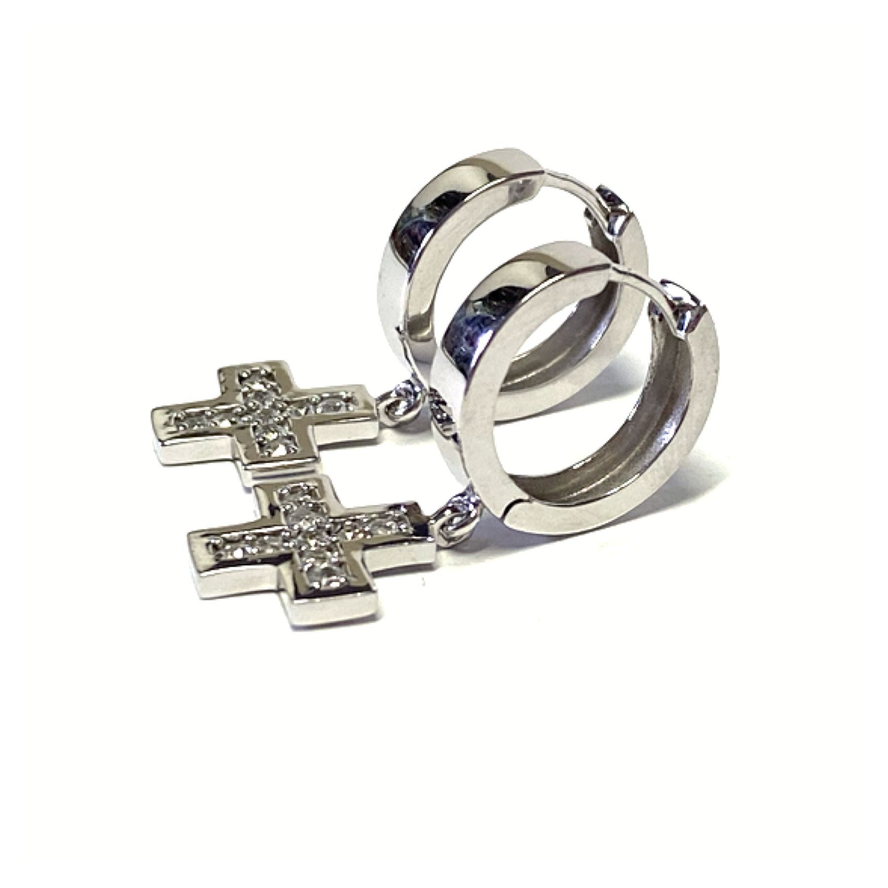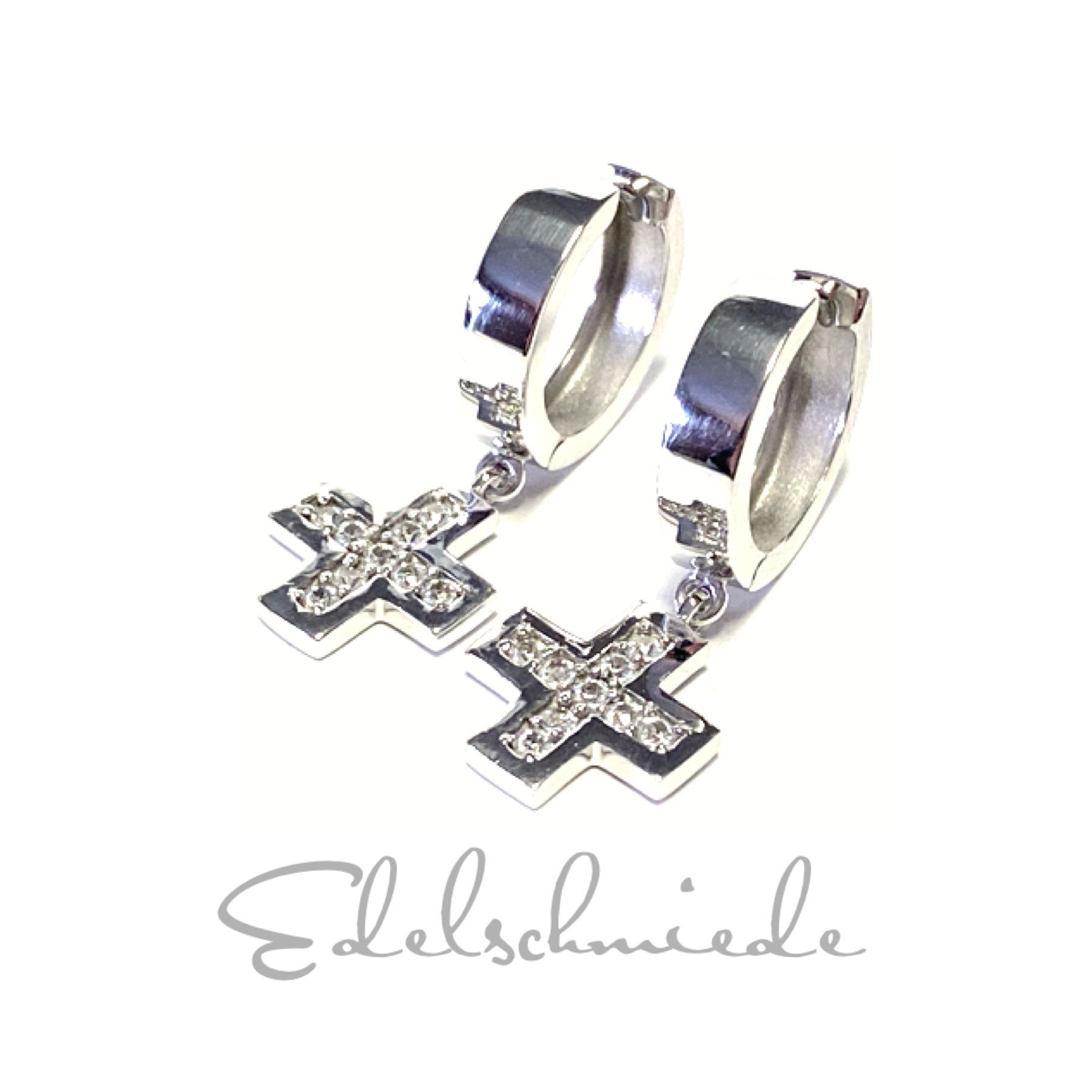 Creolen 925 Silber rhodiniert - poliert - Zirkonia Kreuz quadratisch beweglich