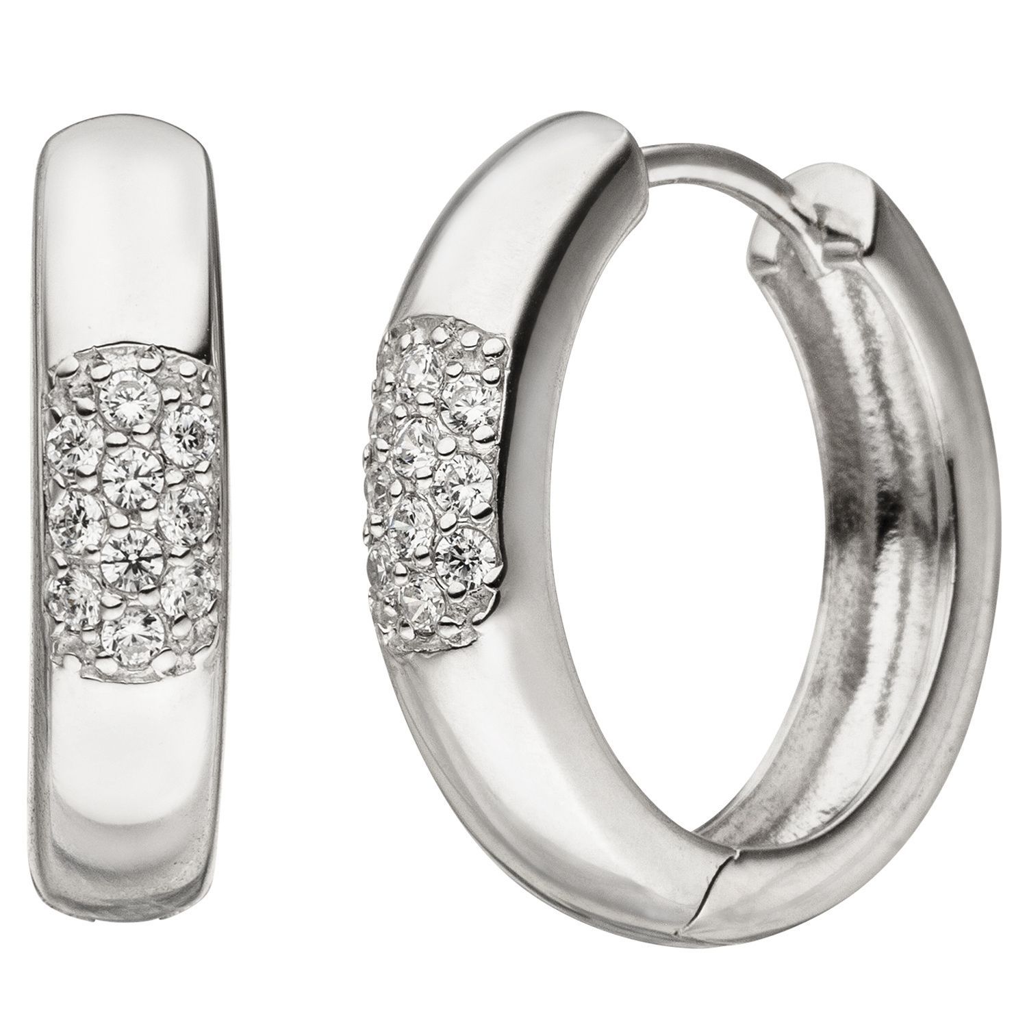 JOBO Creolen 925 Sterling Silber 20 Zirkonia Ohrringe Silbercreolen Silberohrringe