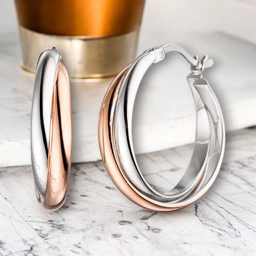 JOBO Creolen 925 Sterling Silber bicolor vergoldet Ohrringe