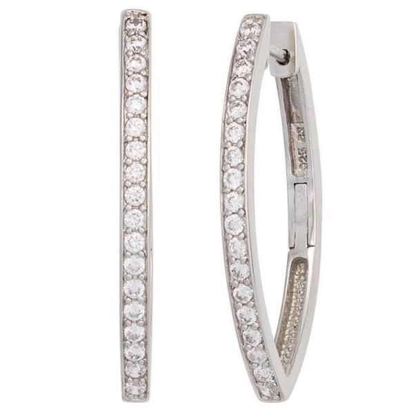 JOBO Creolen oval 925 Sterling Silber mit Zirkonia 37 mm Ohrringe