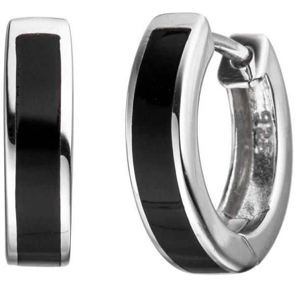 JOBO Creolen rund 925 Silber mit Onyx-Imitation schwarz Ohrringe