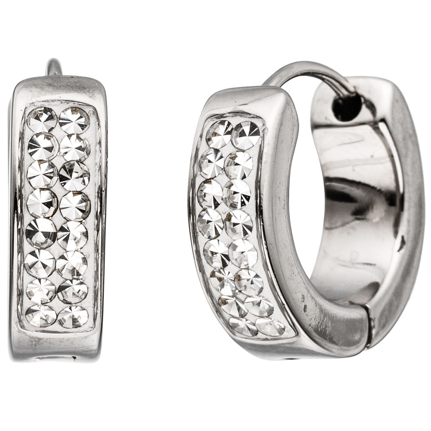 1 Paar Creolen mit Klappmechanik aus Edelstahl, mit Kristallsteinen und Epoxidharz-Beschichtung (Steine können nicht herausfallen), Außendurchmesser ca. 13,8 mm, Breite ca. 4,2 mm, Gewicht ca. 4,5 g * Bitte beachten Sie die Maße! Auf dem Foto kann der Art