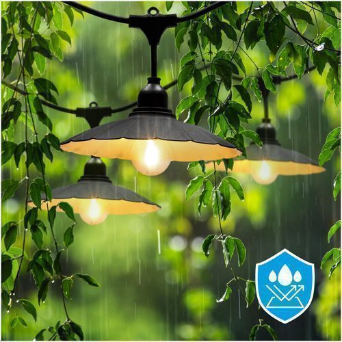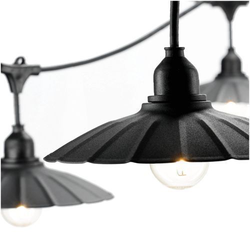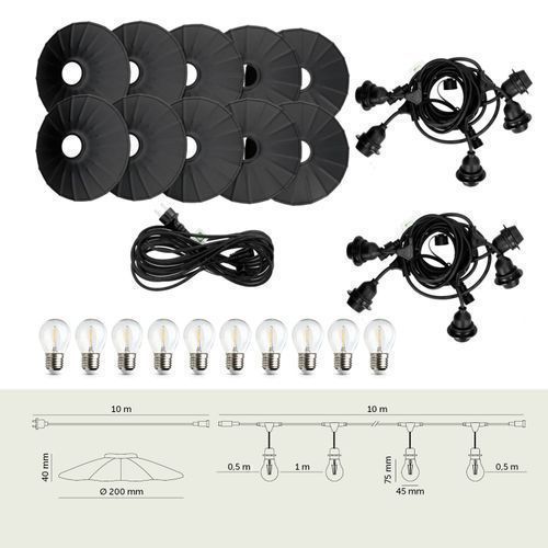 CRETE KIT 2x Gartengirlande 5m + Kabel 10m + 10x Lampenschirm schwarz M1 + LED