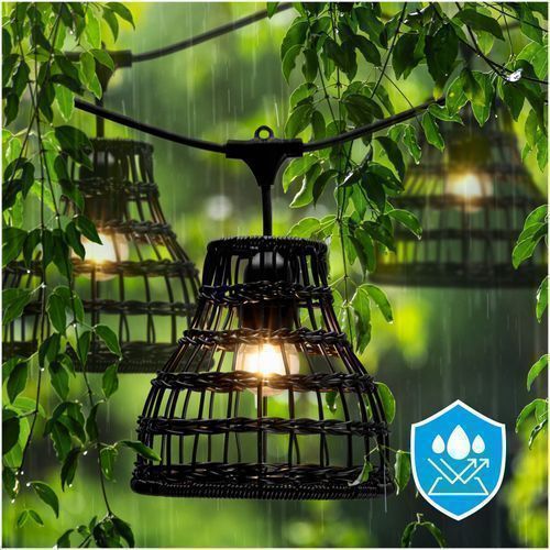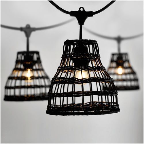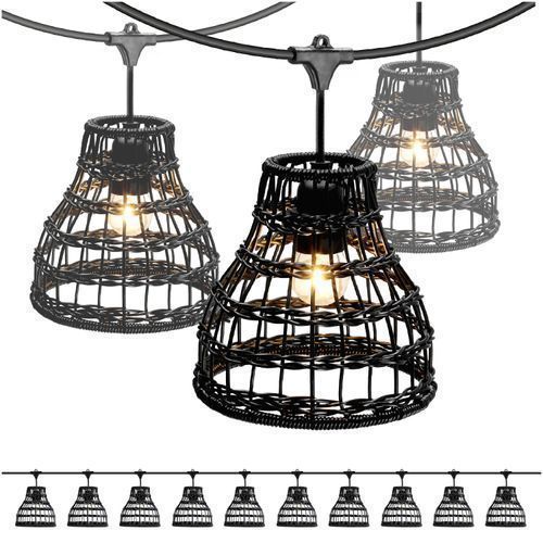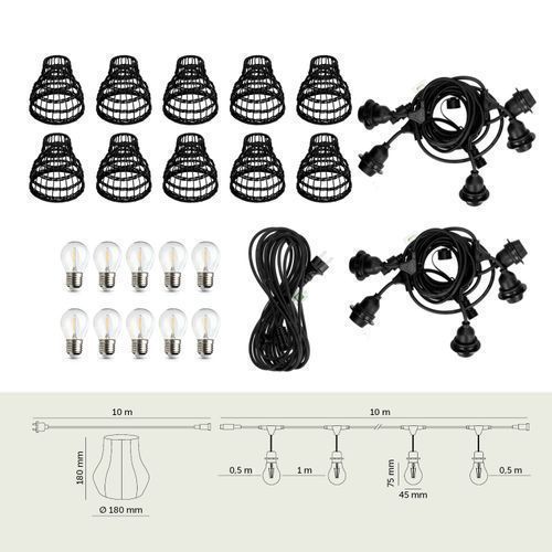 CRETE SET 2x 5m Gartengirlande + 10m Kabel + 10xR2 schwarzer Lampenschirm+Glühbirnen