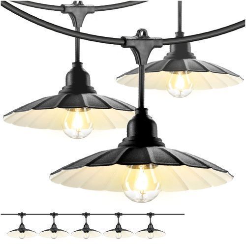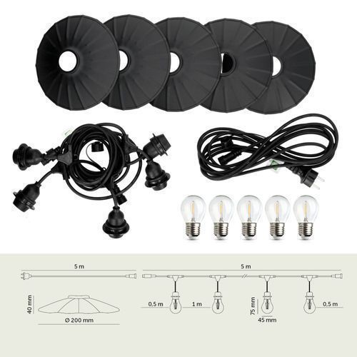 CRETE SET Gartengirlande 5m + Kabel 5m + 5x Lampenschirm schwarz M1 + Glühbirnen