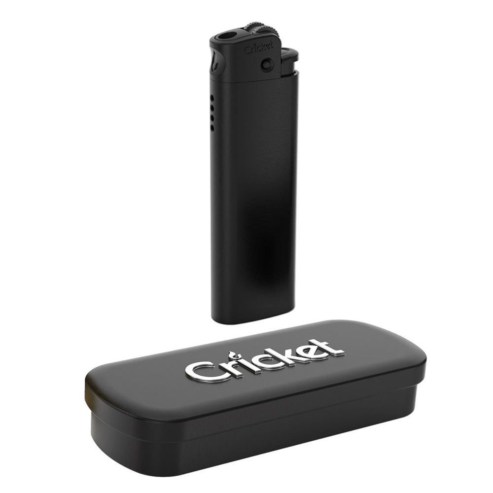 Cricket Reibradfeuerzeug Schwarz Jetflame in der Metallbox + Ersatzfeuerstein