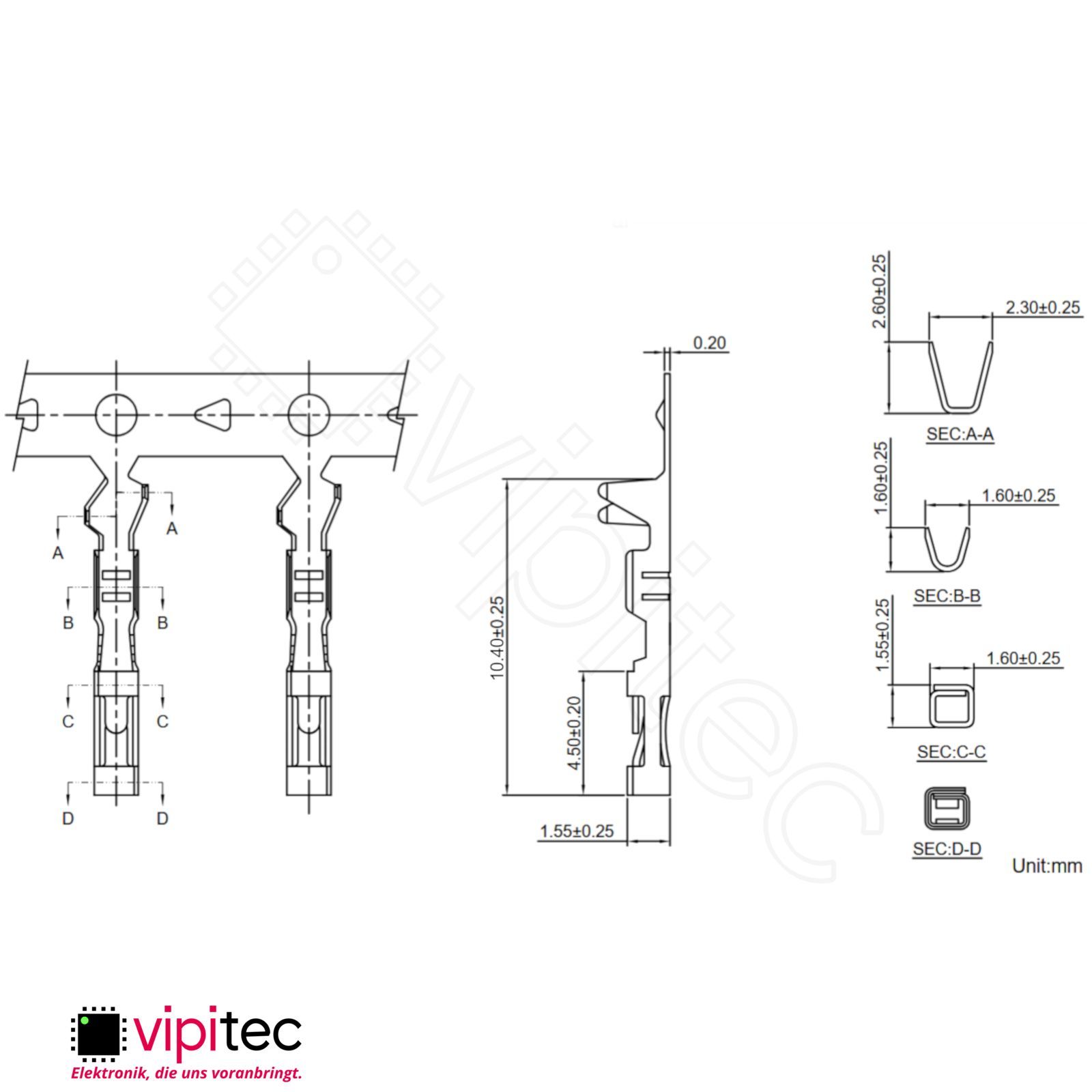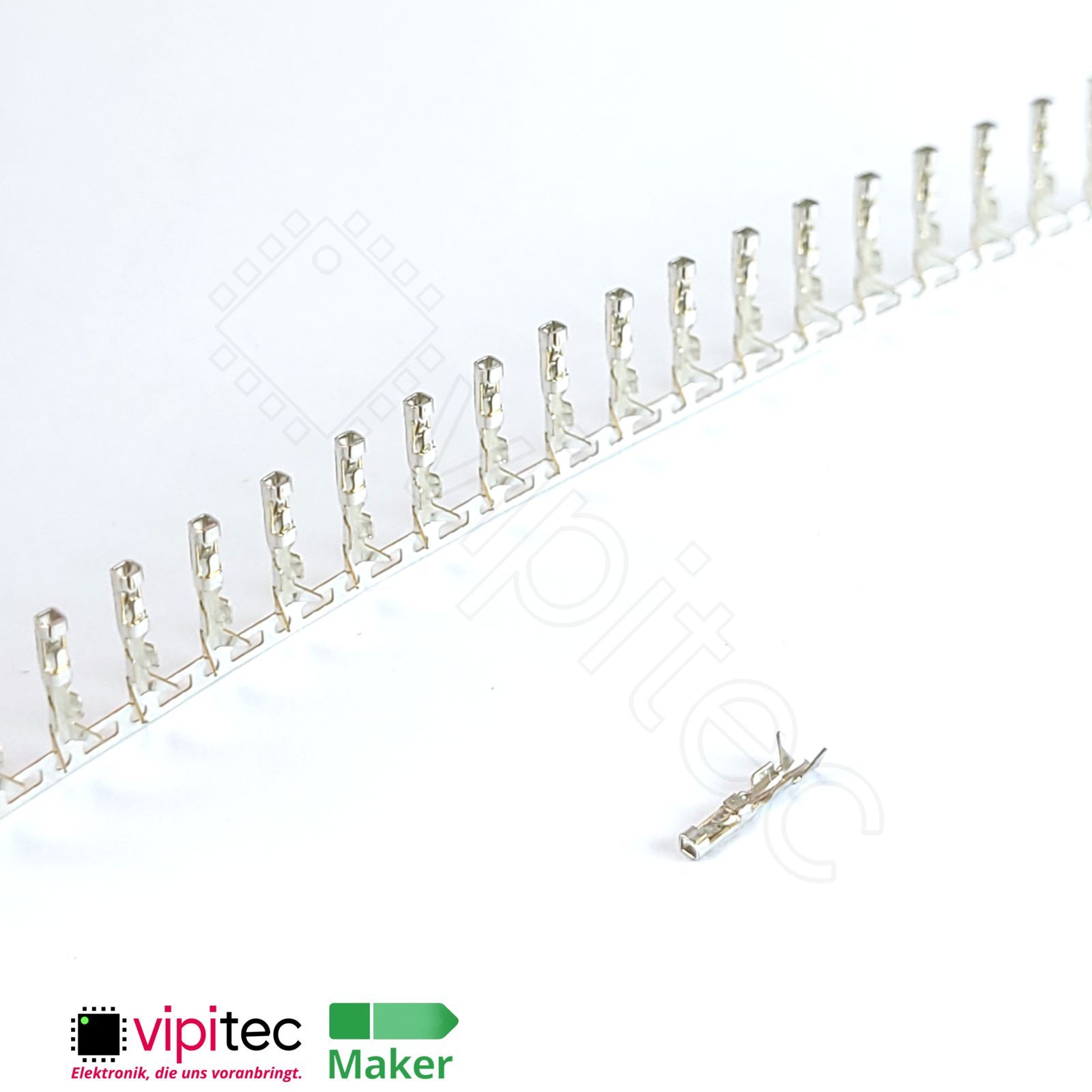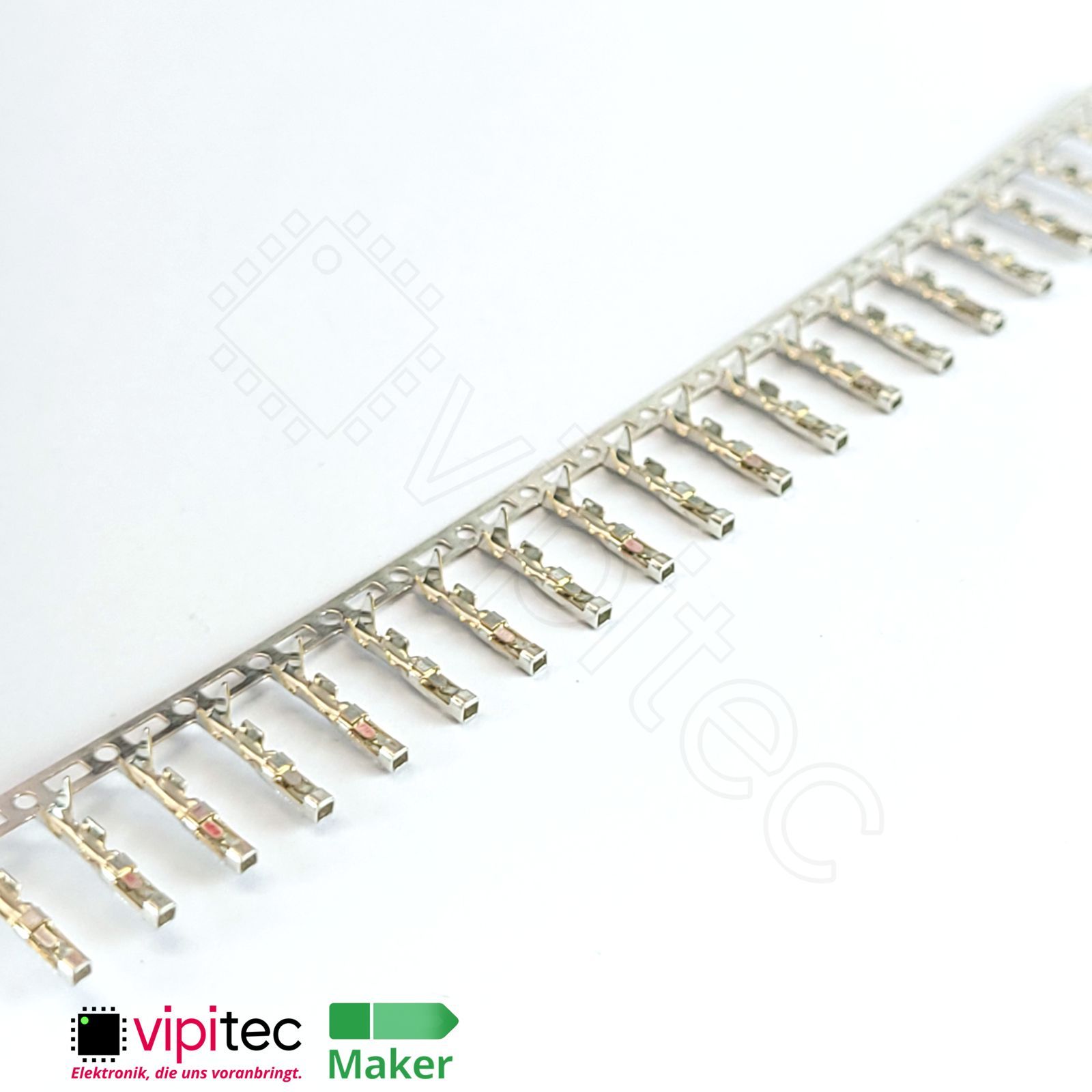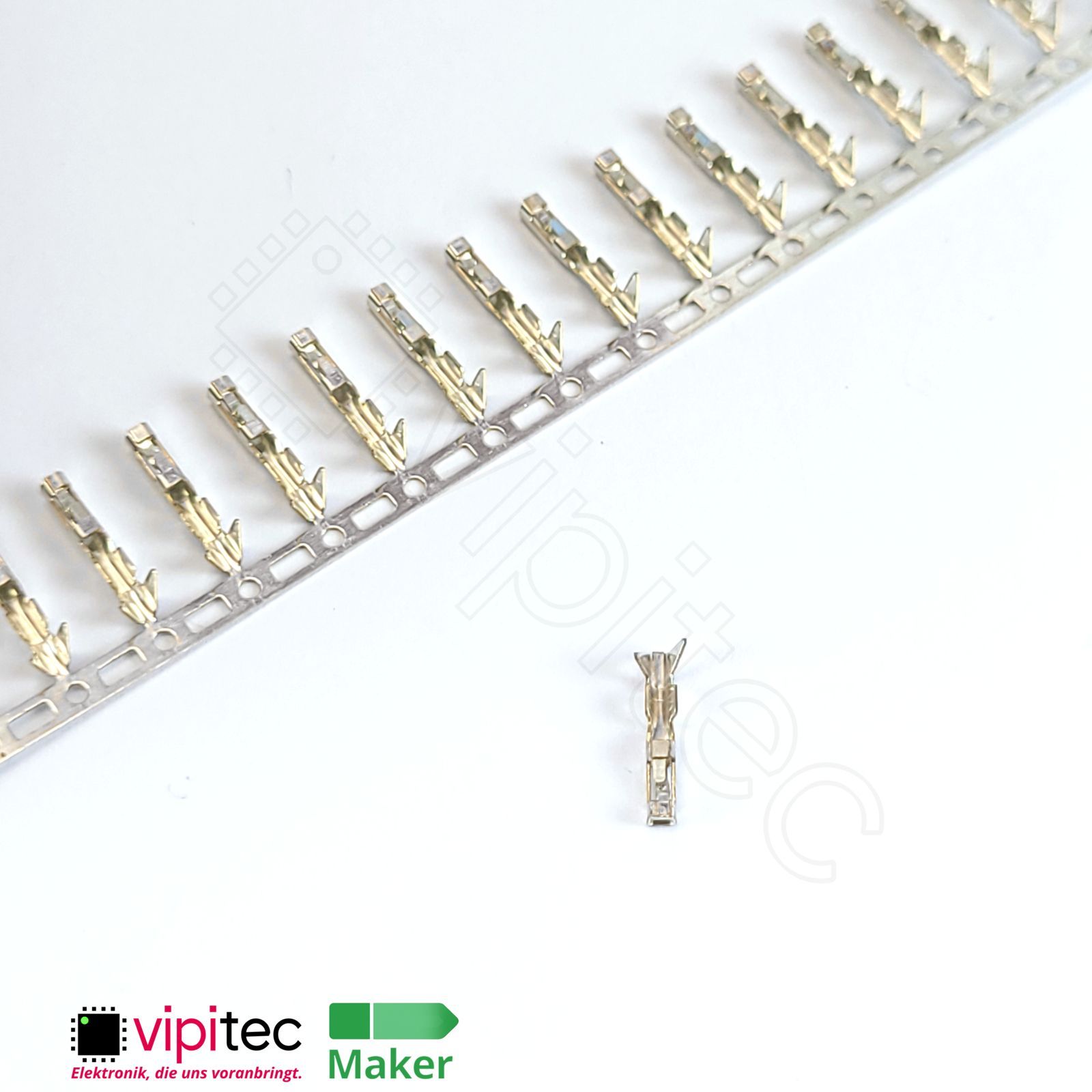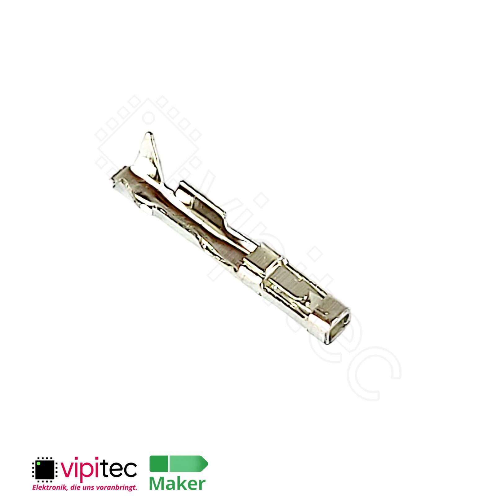 Bei diesem Bauteil handelt es sich um einen einzelnen Crimpkontakt für Dupont-kompatible Buchsenleisten. Solche Kontakte werden auch als Buchsenkontakt, Female-Pin oder Crimp-Terminal bezeichnet und dienen dazu, einzelne Litzen sicher in mehrpolige Steckverbindergehäuse einzusetzen. Der Kontakt ist als weibliche Buchse ausgelegt und nimmt entsprechend einen passenden Stift in Pfostenleisten oder Buchsenleisten auf; er ist für den Einsatz in typis