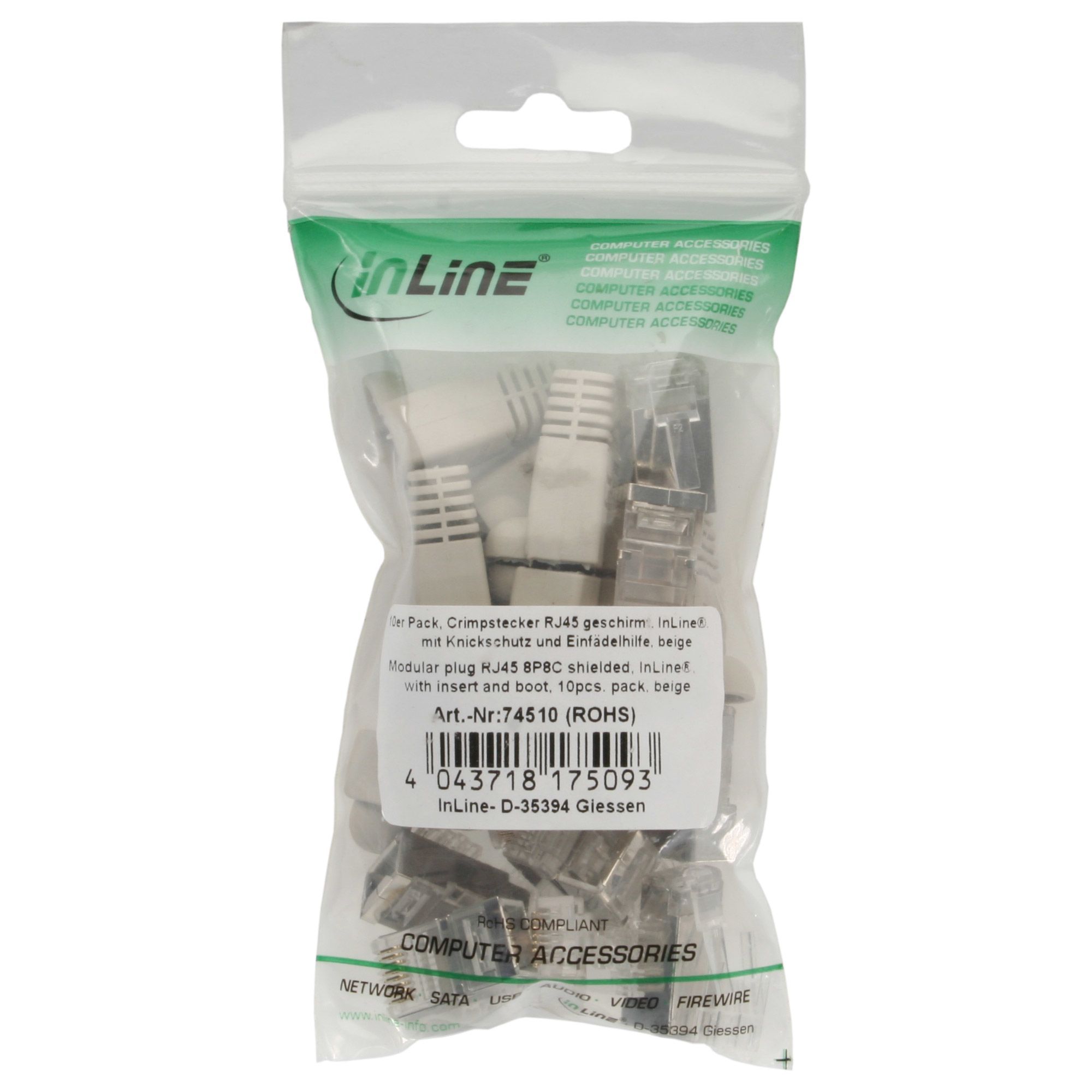 InLine® Crimpstecker RJ45 geschirmt, mit Knickschutz und Einfädelhilfe, 10er Pack