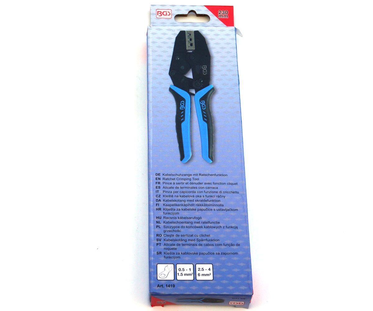 BGS Crimpzange Kabelschuhzange mit Ratschenfunktion für Kabelschuhe 0,5-6 mm²