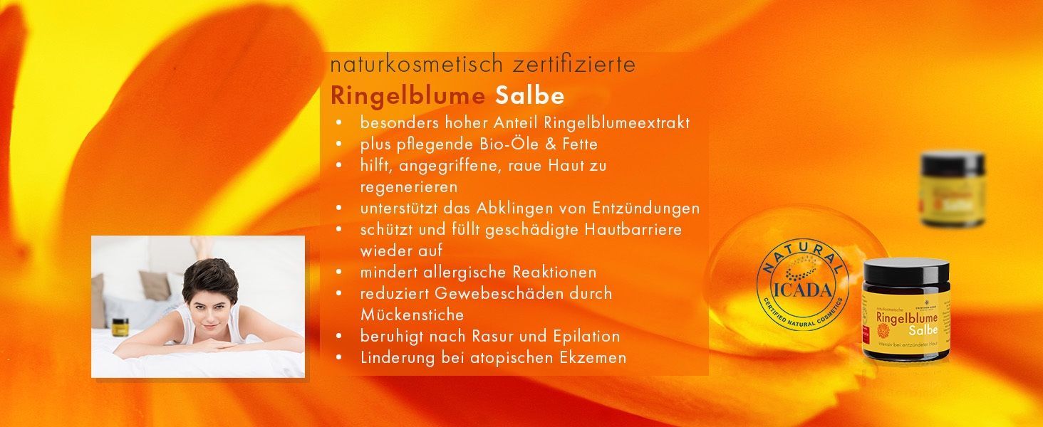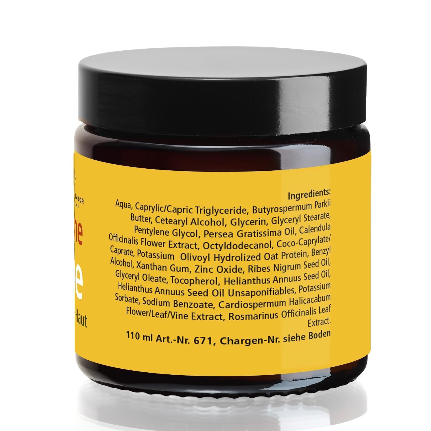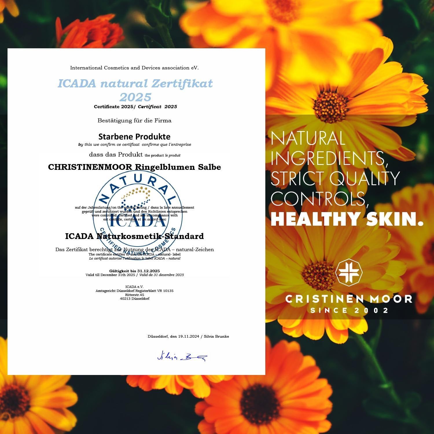 Ringelblumensalbe der Marke Cristinen Moor ist ein naturkosmetisches Produkt mit Zertifikat und einem besonders hohen Anteil an Ringelblumeextrakt, pflegenden Ölen & Sheabutter. Sie hilft, angegriffene, raue Haut zu regenerieren und unterstützt das Abklingen von Entzündungen, sodass die Haut gesund, weich und geschmeidig bleibt. 100% organic, tierversuchsfrei hergestellt. MADE IN GERMANY, ISO 9001 und GMP zertifiziert.