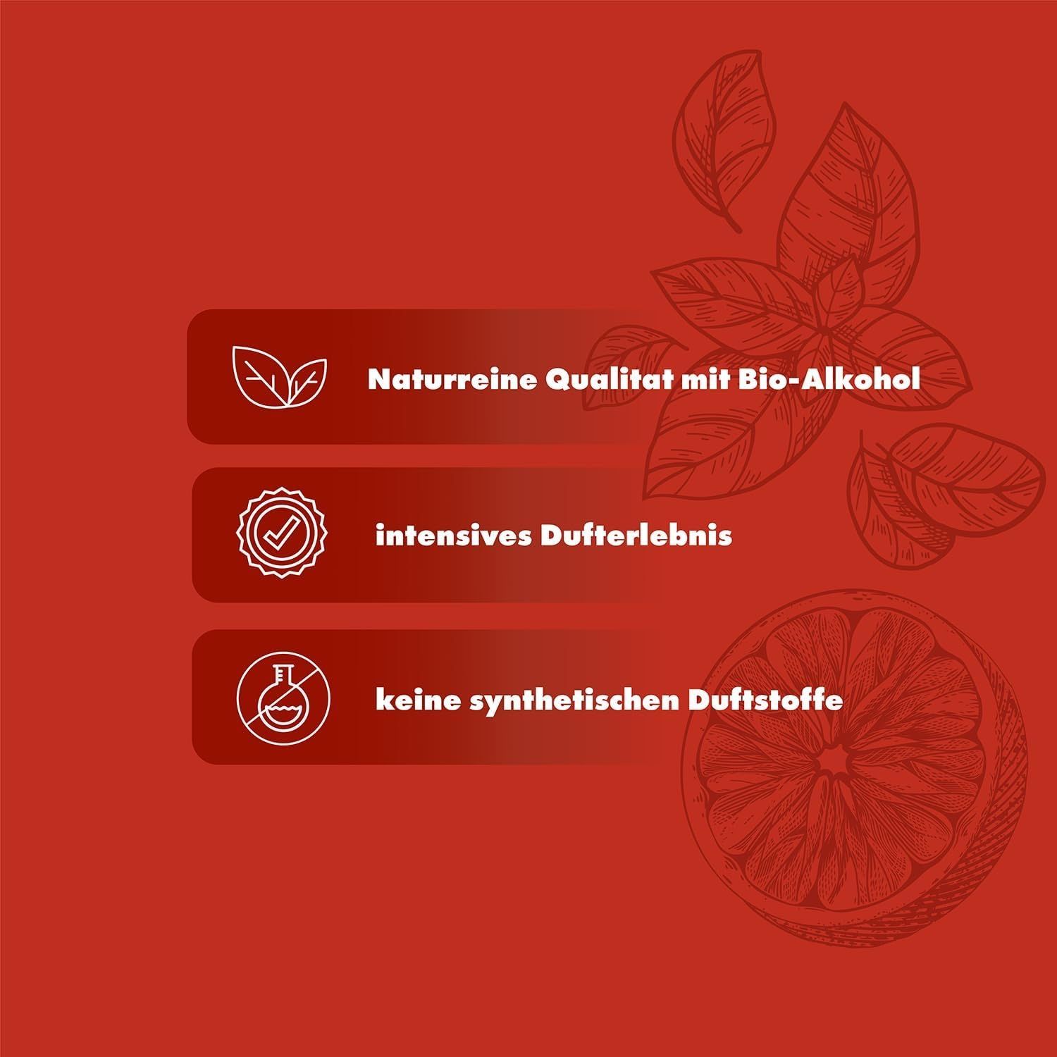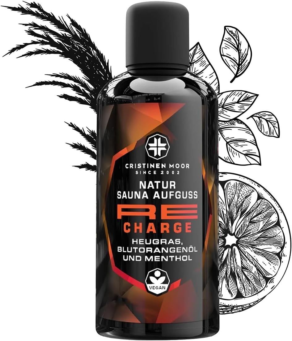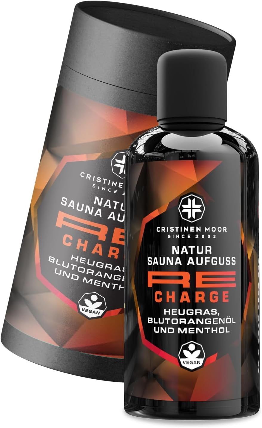 Re-Charge: Die intensive Mischung aus Heugras, Blutorangenöl & Menthol bringt wieder Schwung in Körper & Geist & lädt Ihren Akku auf. Bio Ethanol & naturreine ätherische Öle sind die Inhaltsstoffe unserer hochwertigen Saunaaufguss-Konzentrate. Keine synthetischen Duftstoffe. Ein Potpourri aus fruchtigen, frischen & warmen Noten entführt Sie in natürliche Gefilde, wirkt beruhigend & ist erholsam nach arbeitsreichen Stunden. Hergestellt in GERMANY, ISO 9001 und GMP zertifiziert.