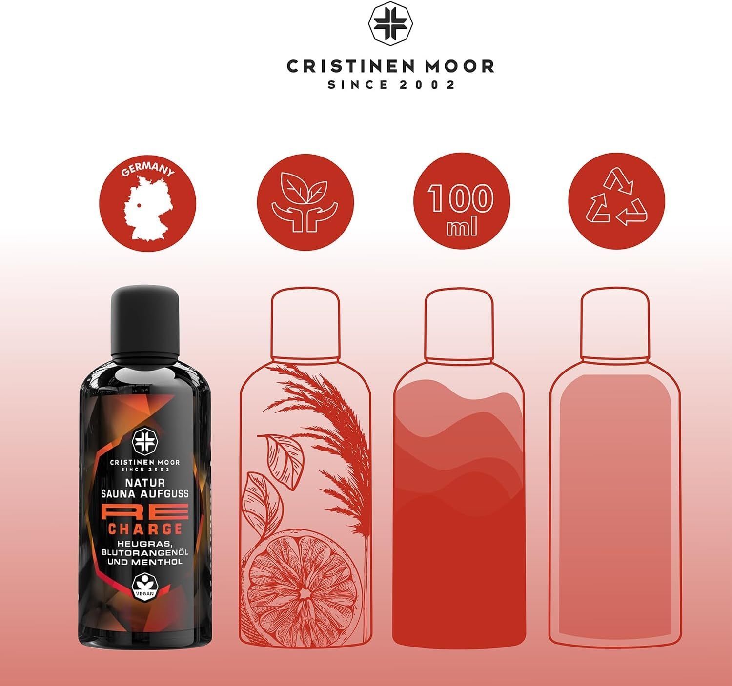CristinenMoor Natürlicher Saunaaufguss Heugras, Blutorangenöl und Menthol 100 ml