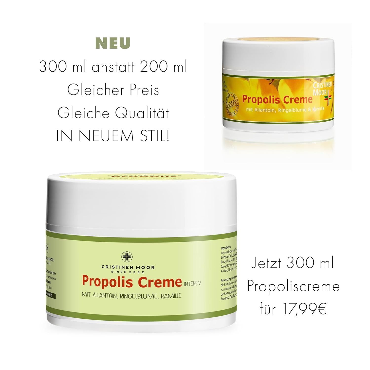 CristinenMoor Propolis Creme hochkonzentriert I 300 ml | Hautpflege von Kopf bis Fuß
