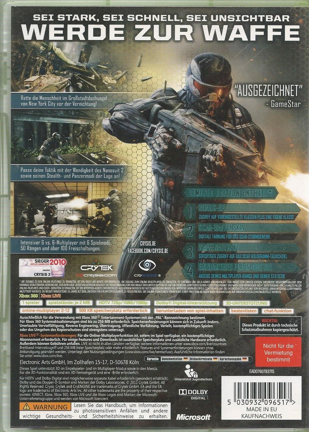 Spiel wie Abbildung - DVD Verpackung und Anleitung in sehr gutem Zustand - Spiel CD hat nur ganz geringe Gebrauchsspuren Rette New York City vor dem Untergang - Die Welt liegt in Crysis 2 in Schutt und Asche. Eine Reihe von Klimakatastrophen hat die gesamte menschliche Gesellschaft bis an den Rand d... Mehr