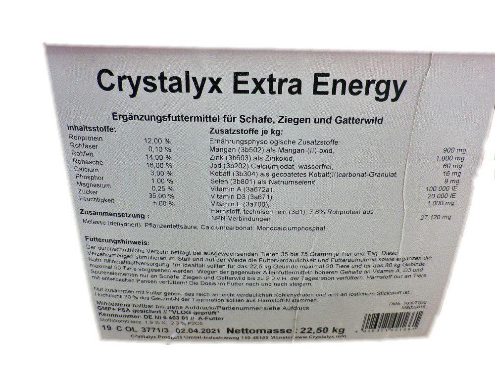 Crystalyx Extra Energy Ergänzungsfuttermittel Schafe Ziegen + Gatterwild 22,5kg