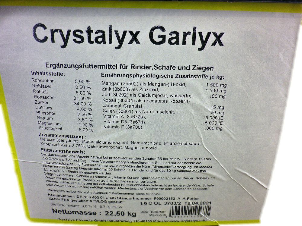 Crystalyx Garlyx zur Insektenabwehr Ergänzungsfuttermittel Schafe Rinder 22,5 kg