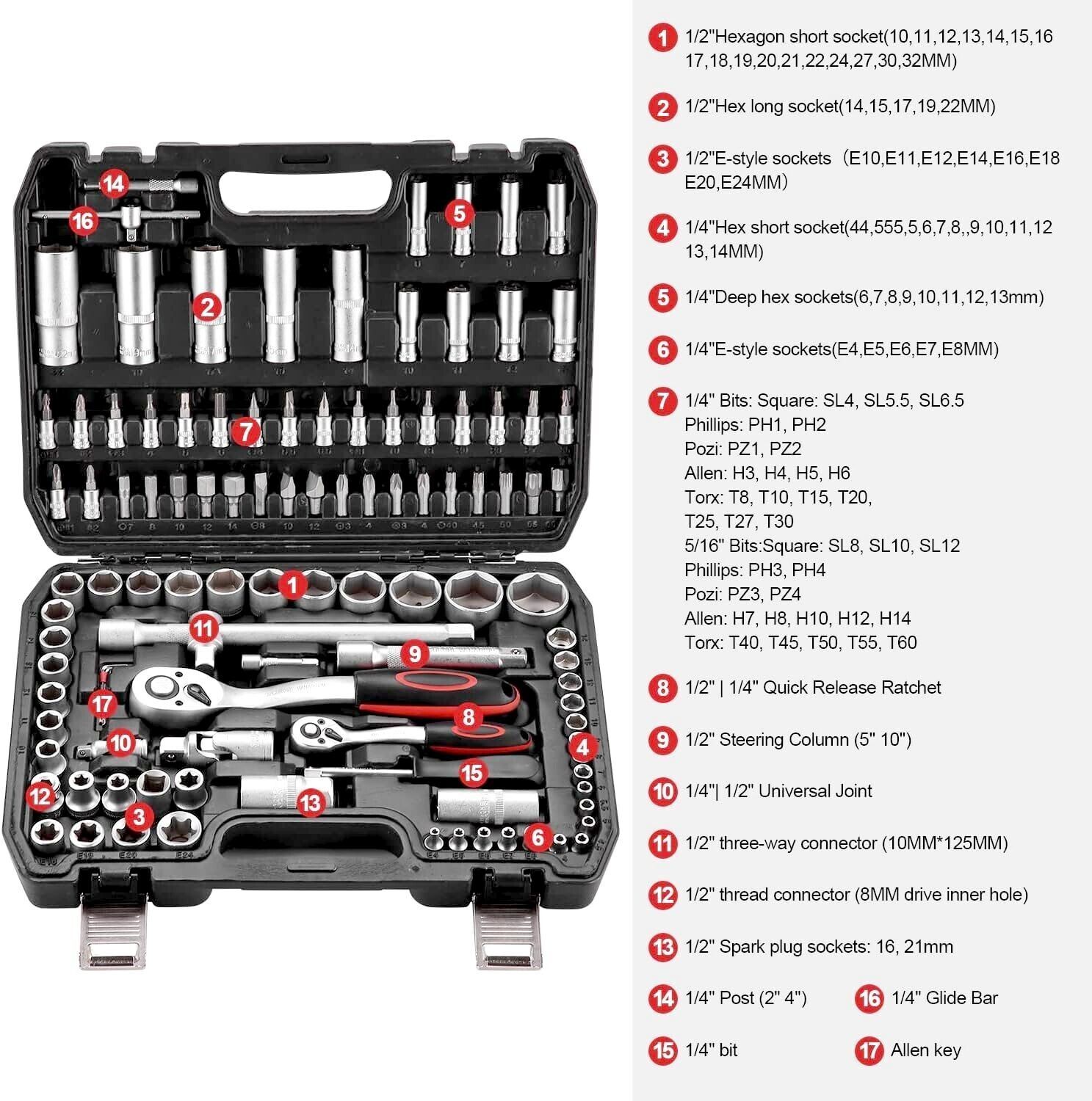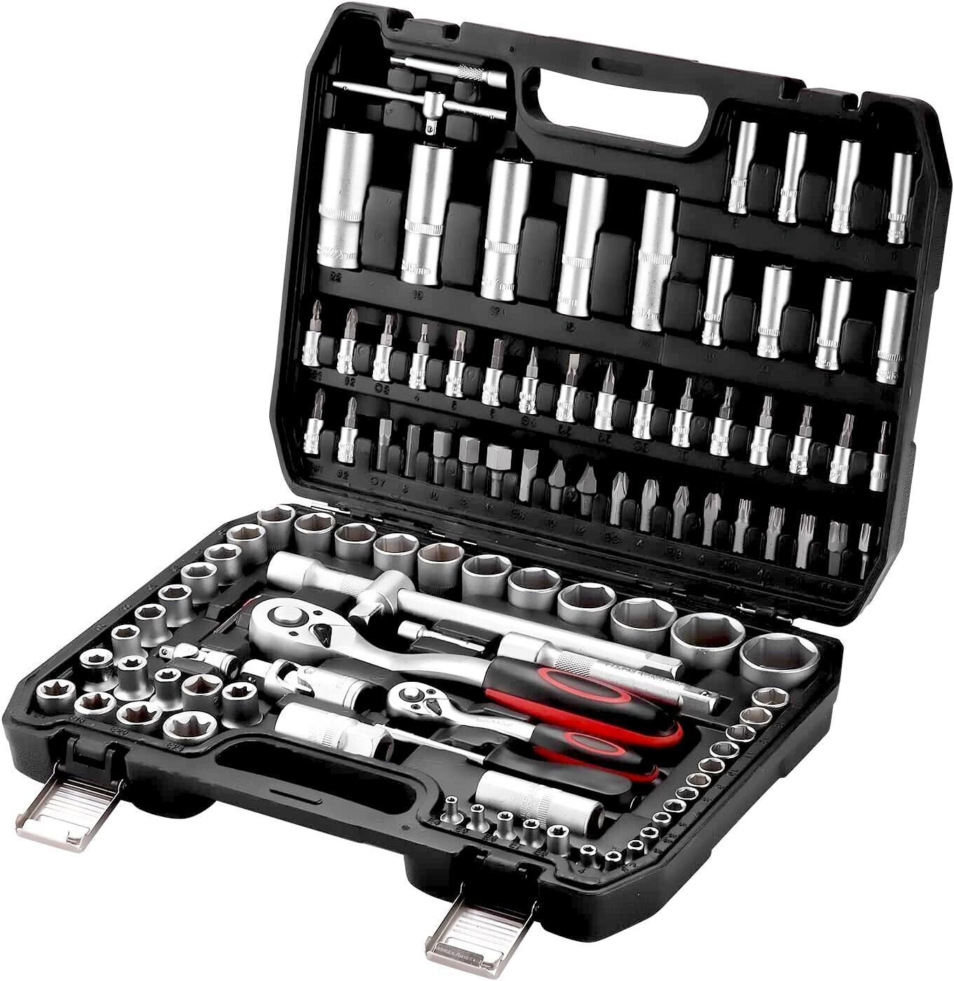CT12108A Werkzeug Steckschlüssel Bits Set 108Tlg Ratsche 1/2" 1/4" Zoll 72 Zähne