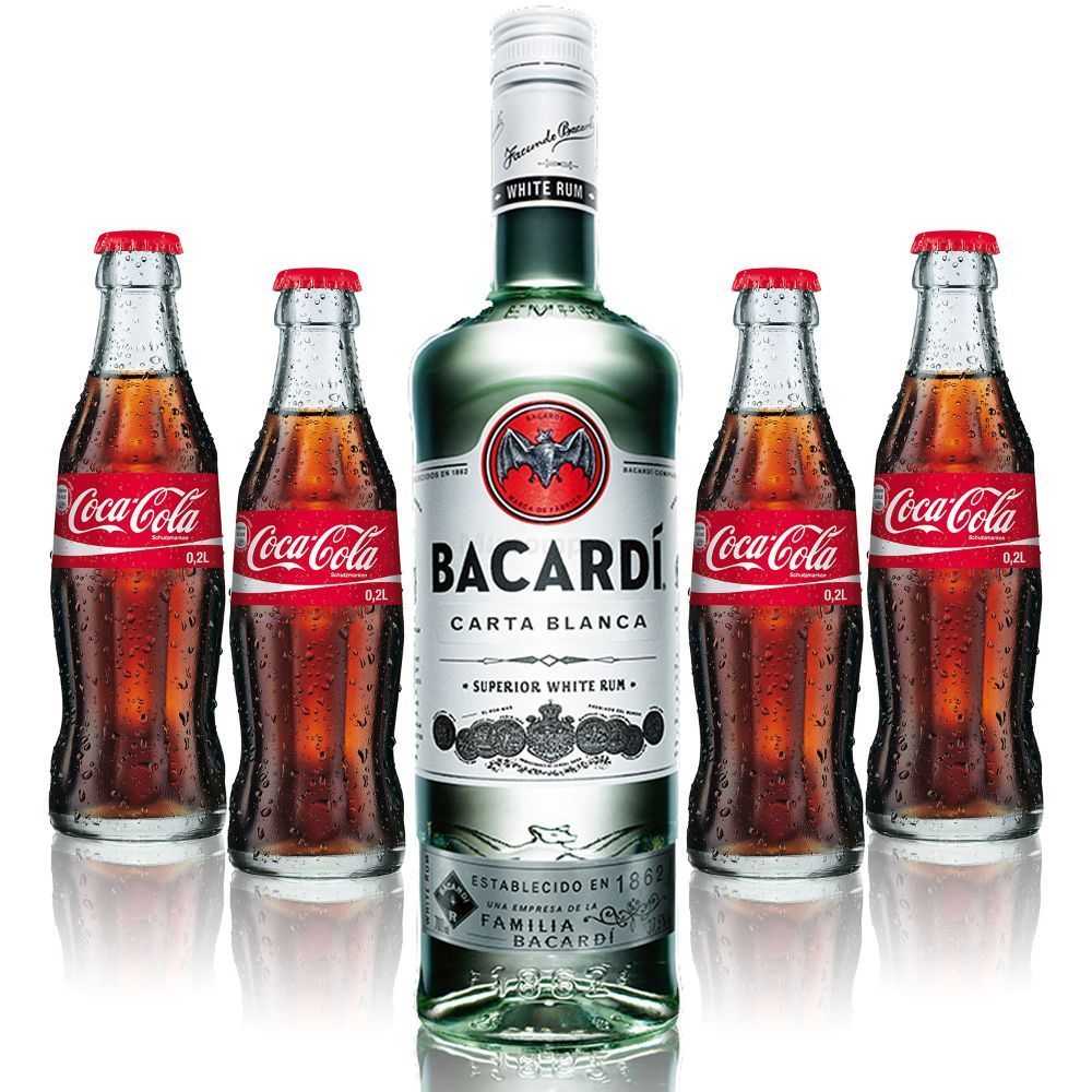 Bacardi Cuba Libre Set - Bacardi Carta Blanca Rum 0,7l 700ml (37,5% Vol) + 4x Coca Cola