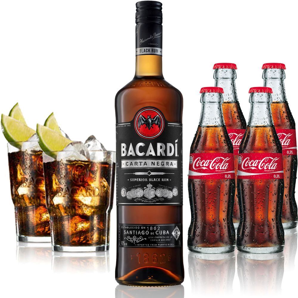 Bacardi Cuba Libre Set - Bacardi Carta Negra Rum 0,7l 700ml (40% Vol) + 4x Coca Cola 0,