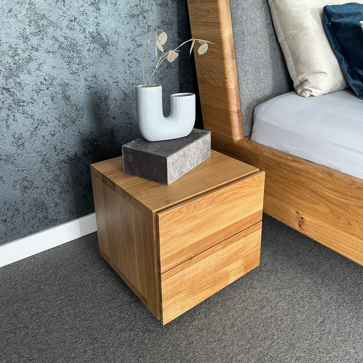 Cube-Nachtschrank aus Massivholz Eiche