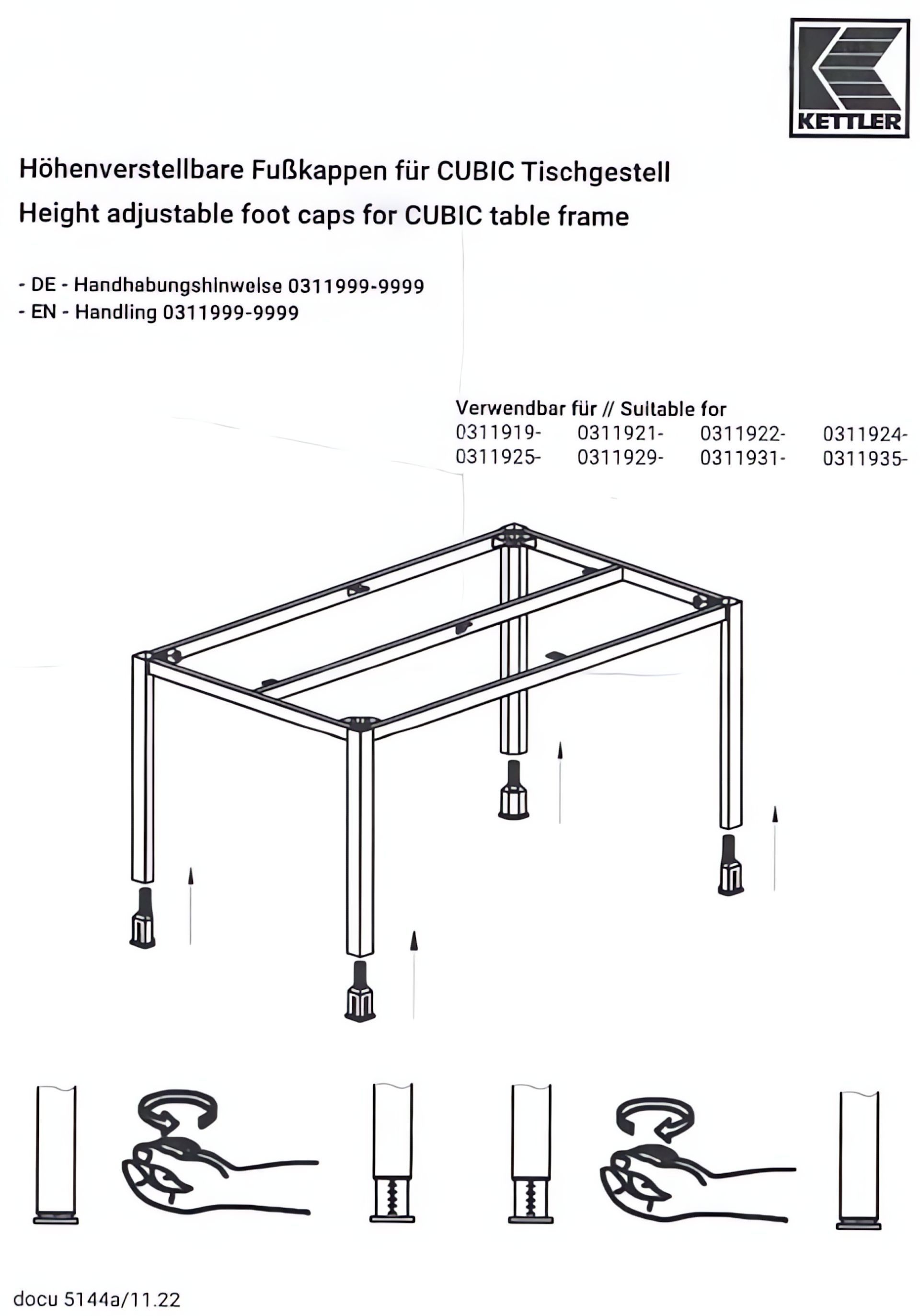 KETTLER CUBIC Fußkappen 4er Set, höhenverstellbar