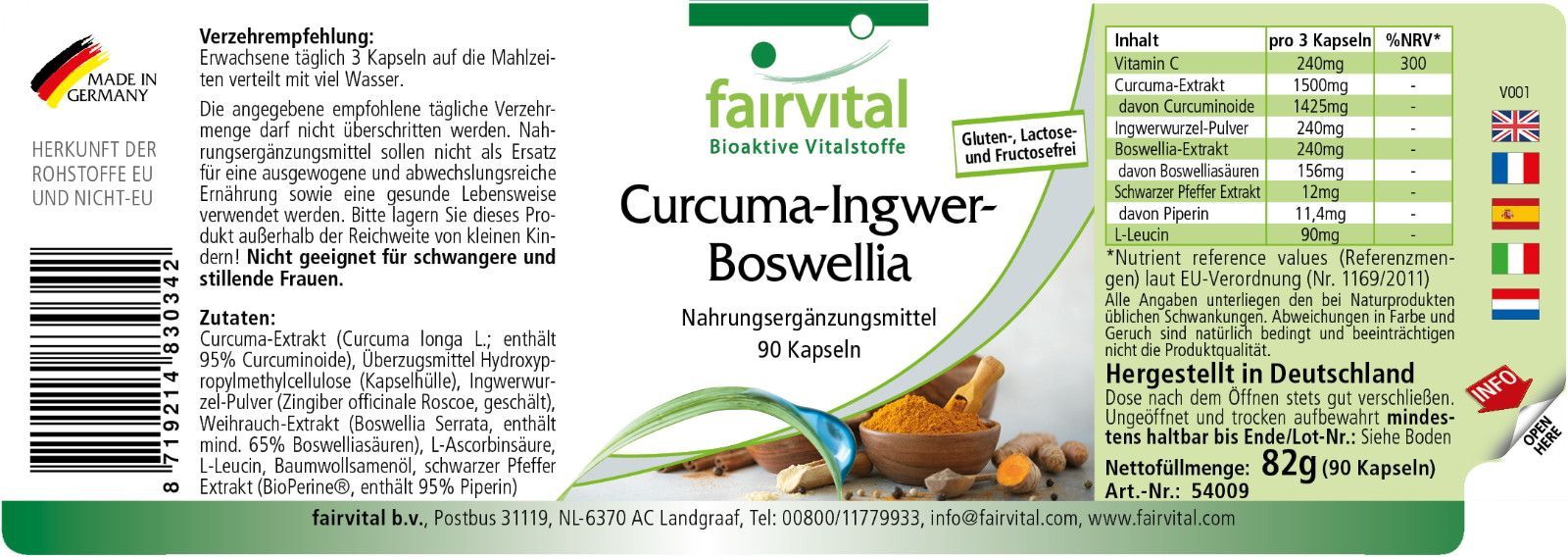 fairvital Curcuma Ingwer Boswellia - 90 Kapseln mit Vitamin C - fairvital