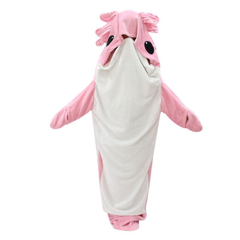 Cute Axolotl Schlafsack Flanell Decke Unisex Kapuze Pyjama mit Ärmeln Outdoor Camping