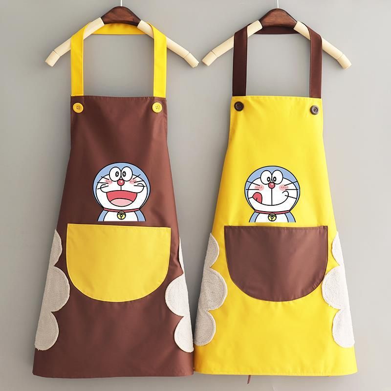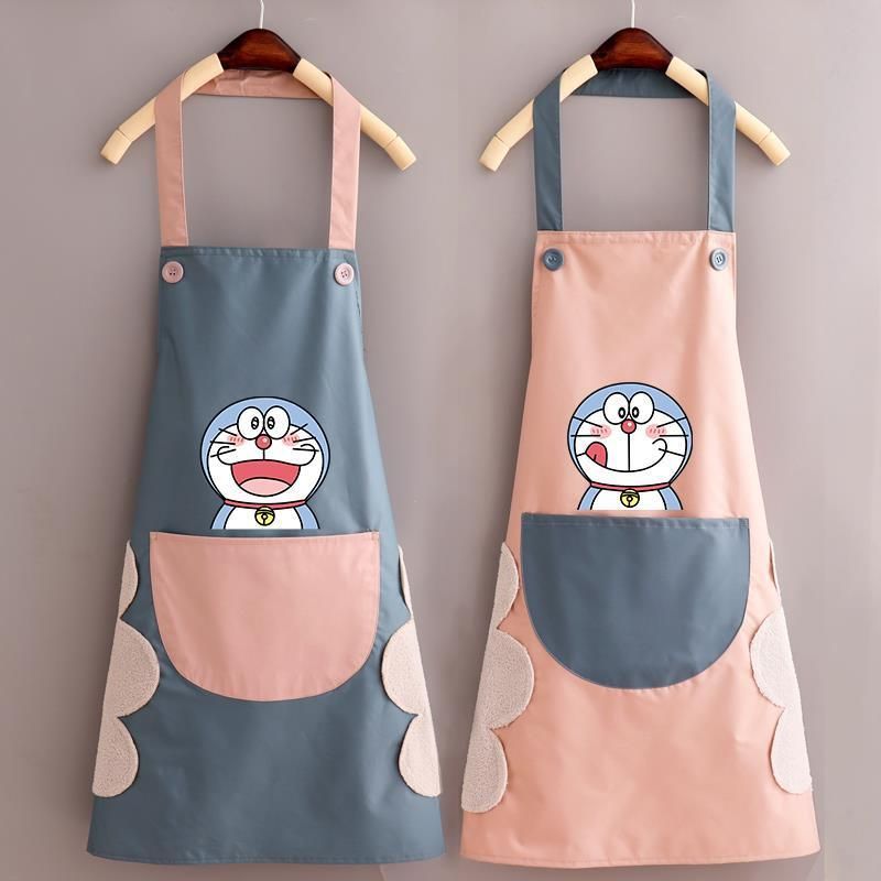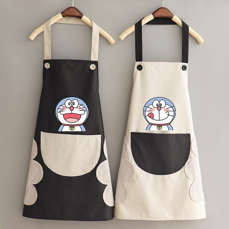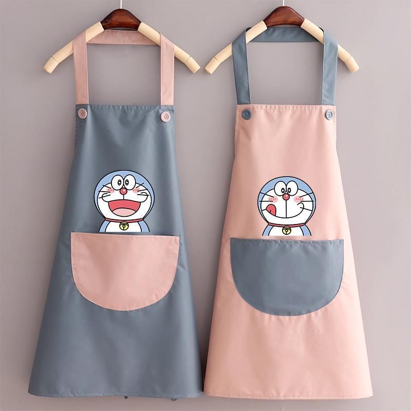 Cute Doraemon Neckholder Grillschürze BBQ Wasserdichte Olfest Schürze mit Taschen